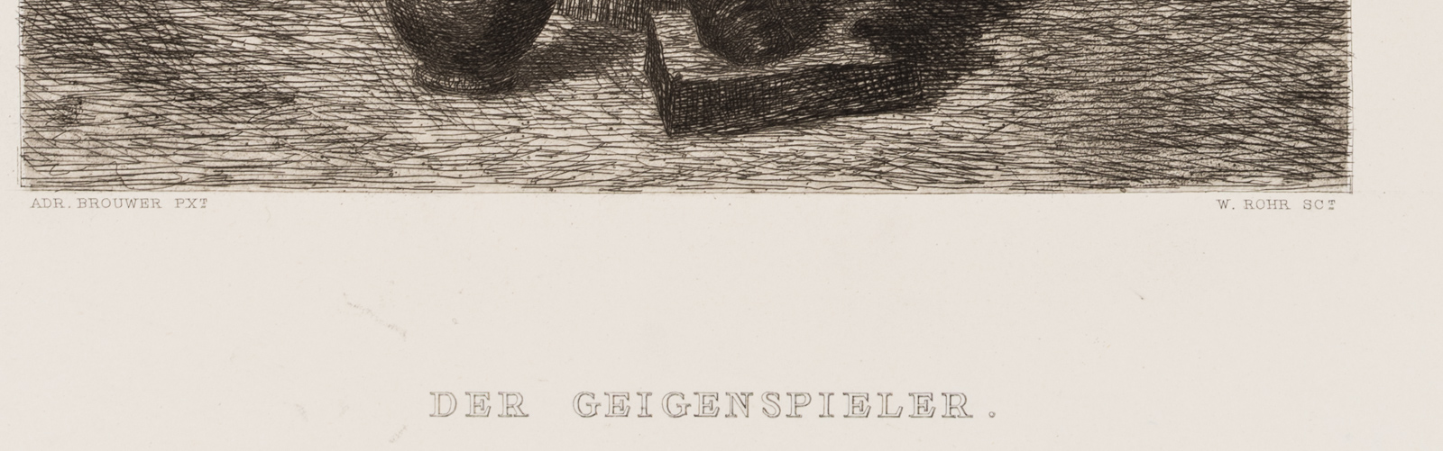 - Bezeichnung: Links unterhalb der Graphik signiert mit “Adr. Brouwer px” und rechts mit “W. Rohr sc”, darunter betitelt.