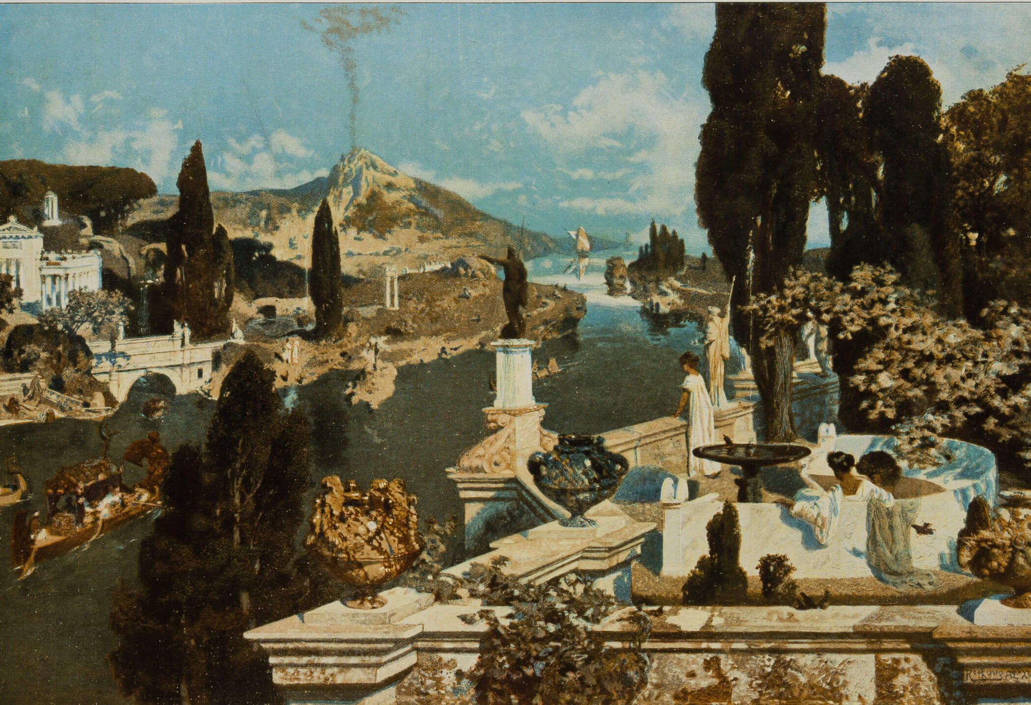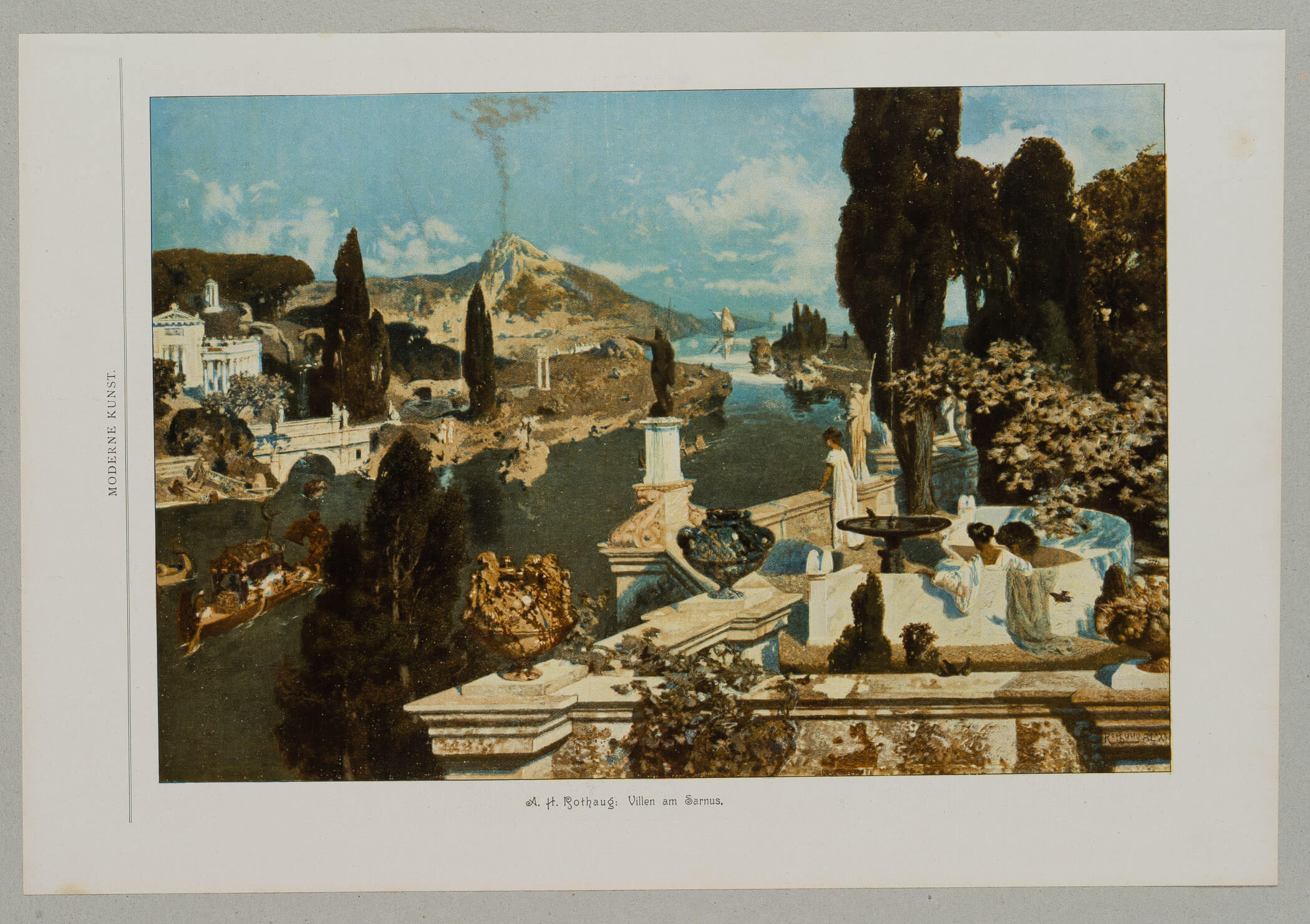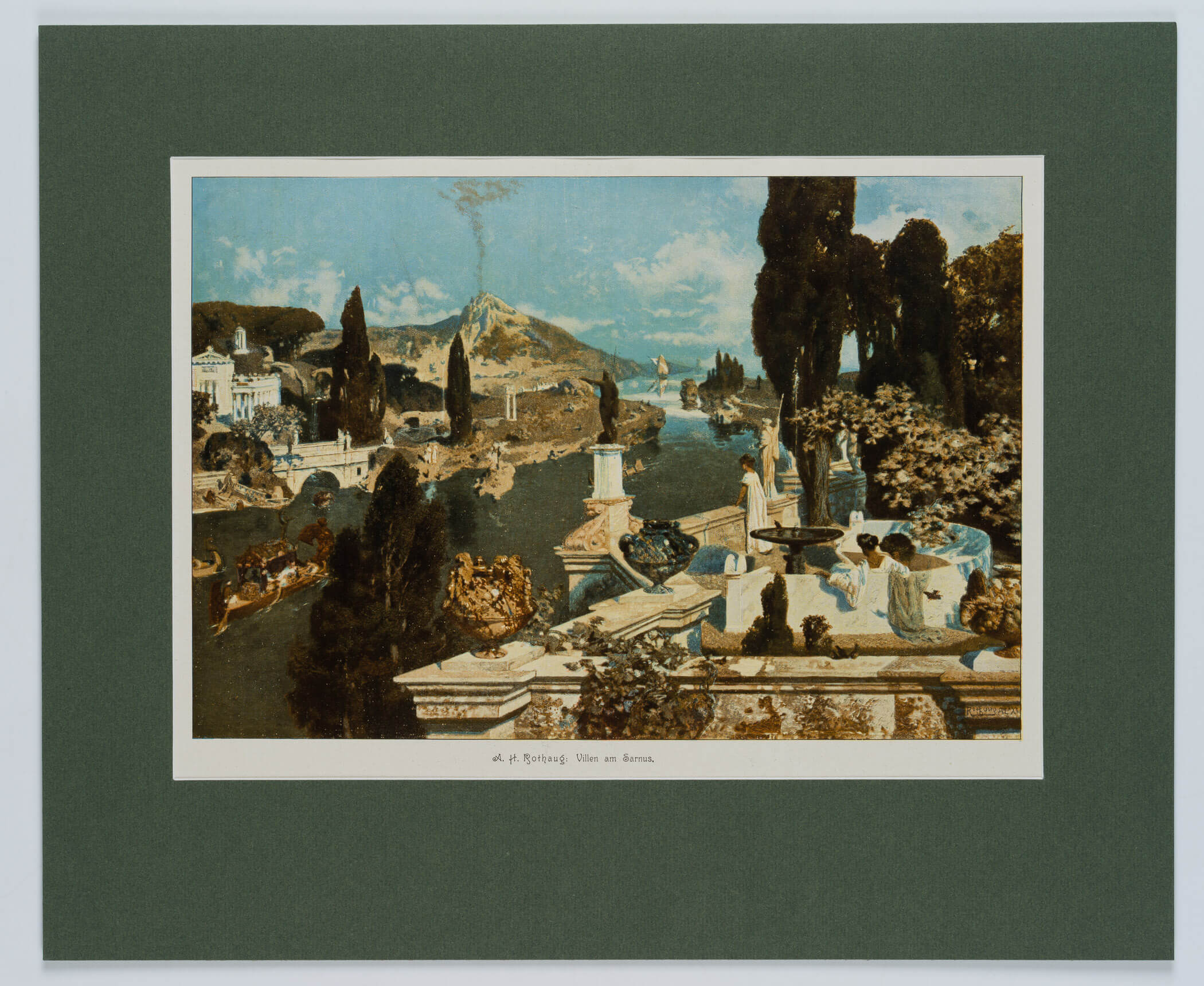 Alexander Rothaug (1870 Wien – 1946 ebd.) nach Unbekannt (20. Jahrhundert), ROTHAUG, ‘Villen am Sarnus’. Antikisierende Landschaft, um 1900,