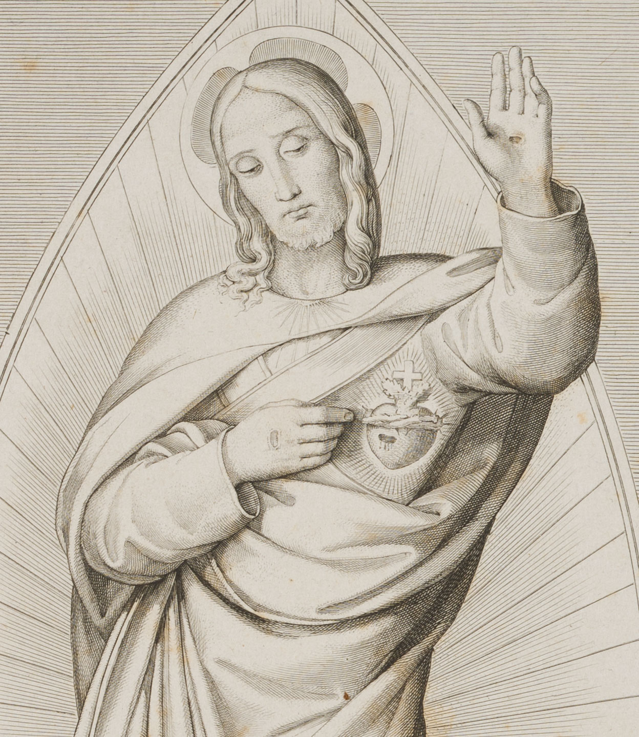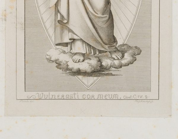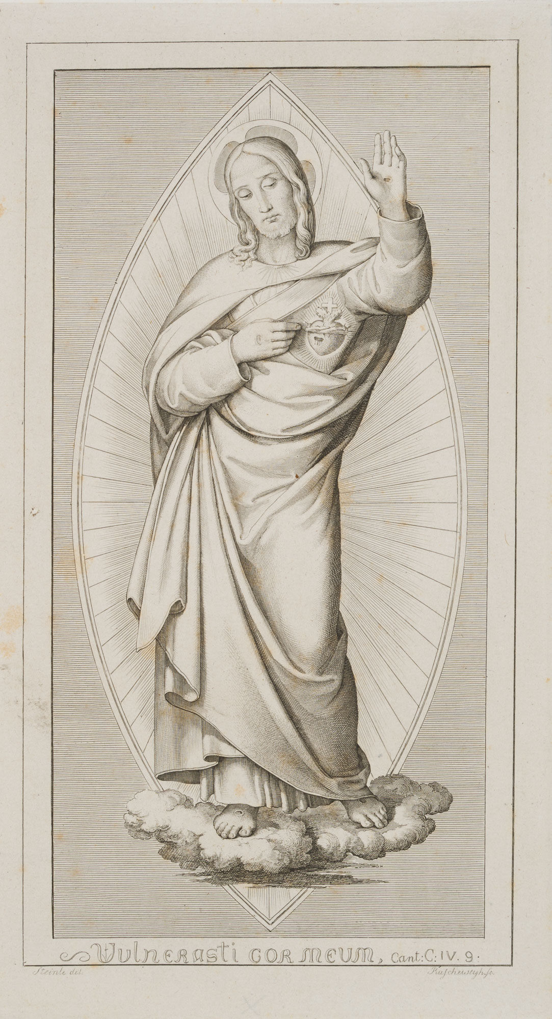 Ferdinand von Ruscheweyh (1785 Neustrelitz – 1845 ibid.) after Edward Jakob von Steinle (1810 Vienna – 1886 Frankfurt on the Main), Vulnerasti cor meum’, The Heart of Jesus Depiction of Jesus with stigmata and open heart, 19th century, Steel engraving