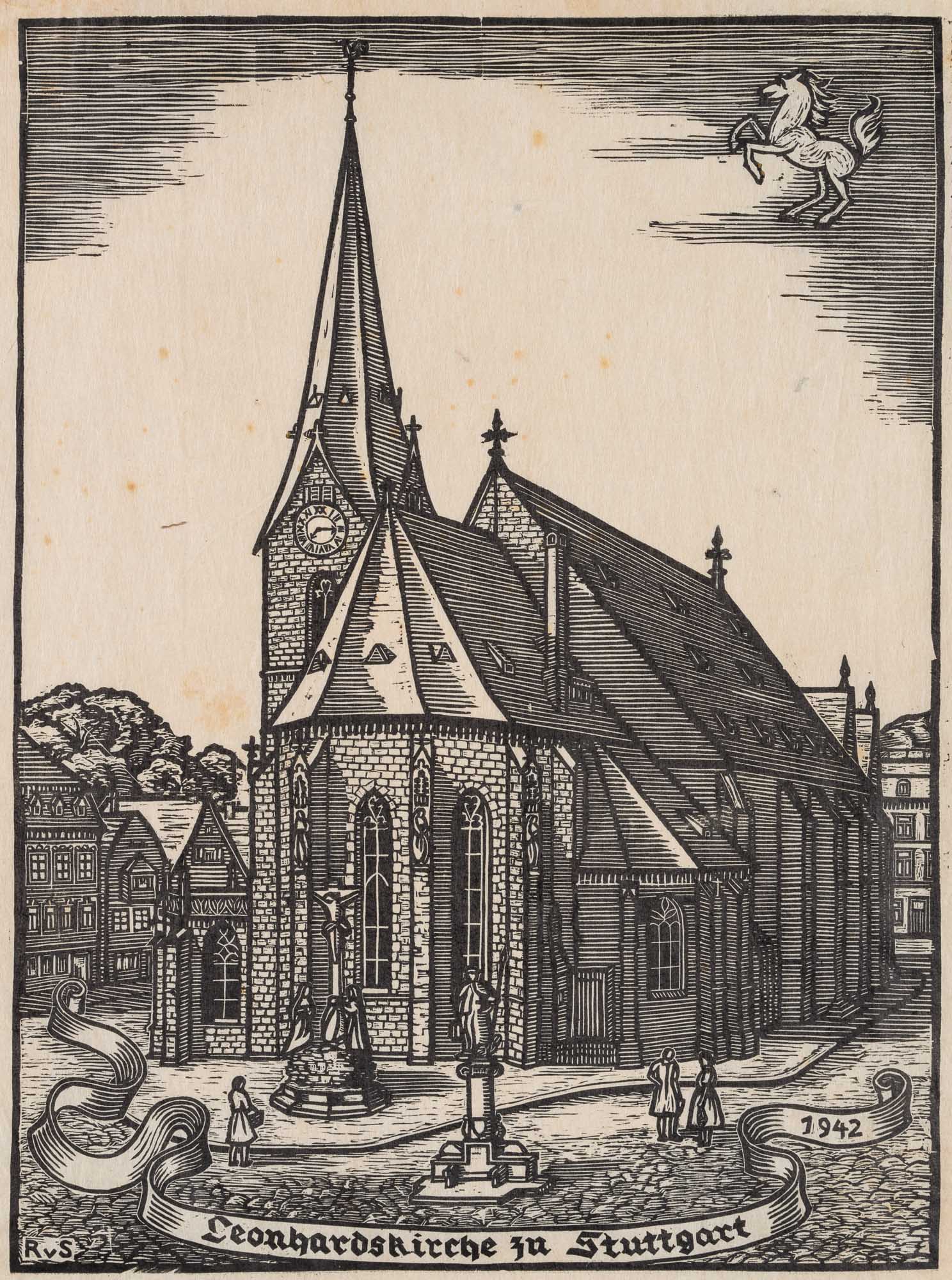 • Inscription: Inscribed, monogrammed and dated “RvS Leonhardskirche zu Stuttgart 1942” below.