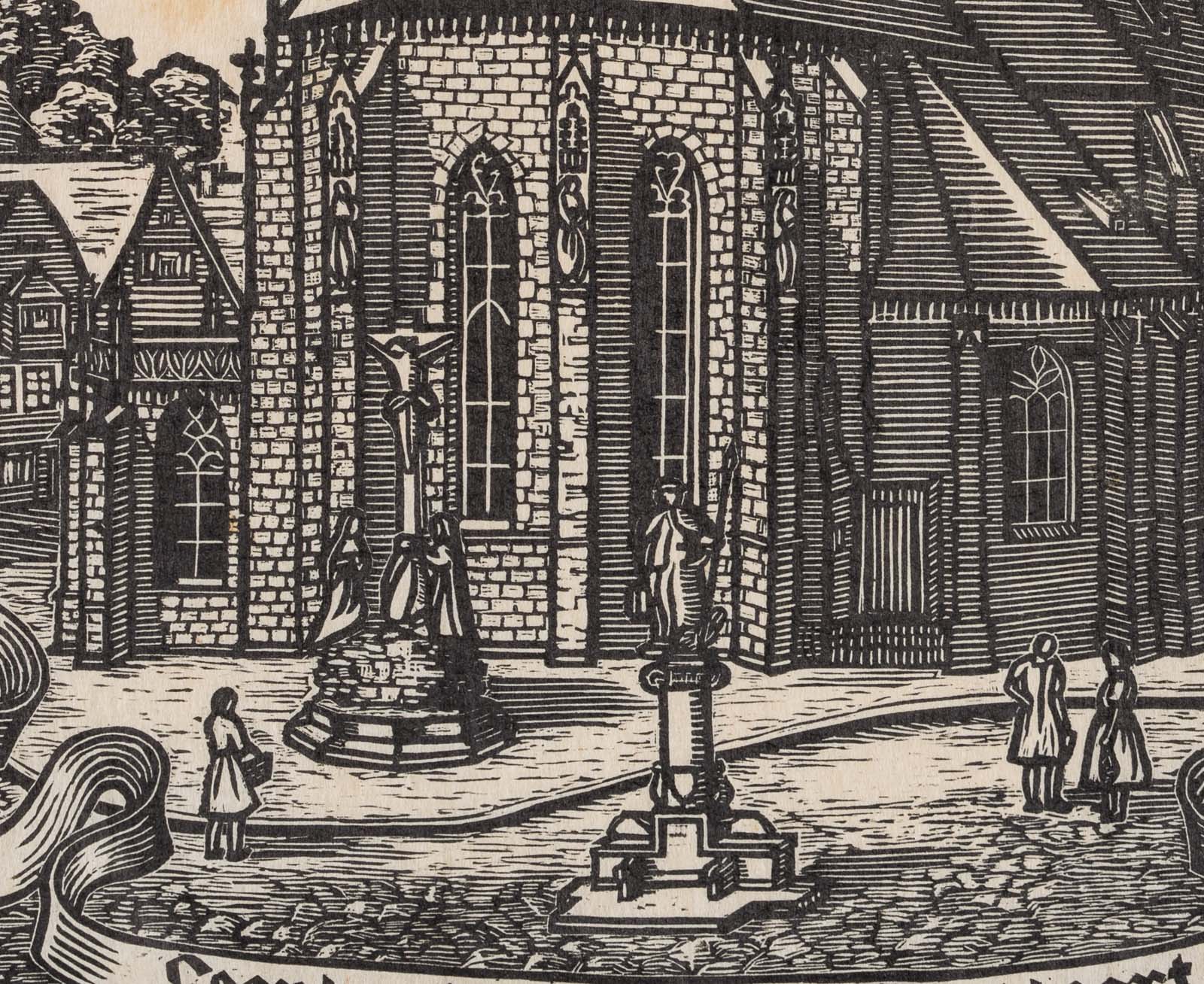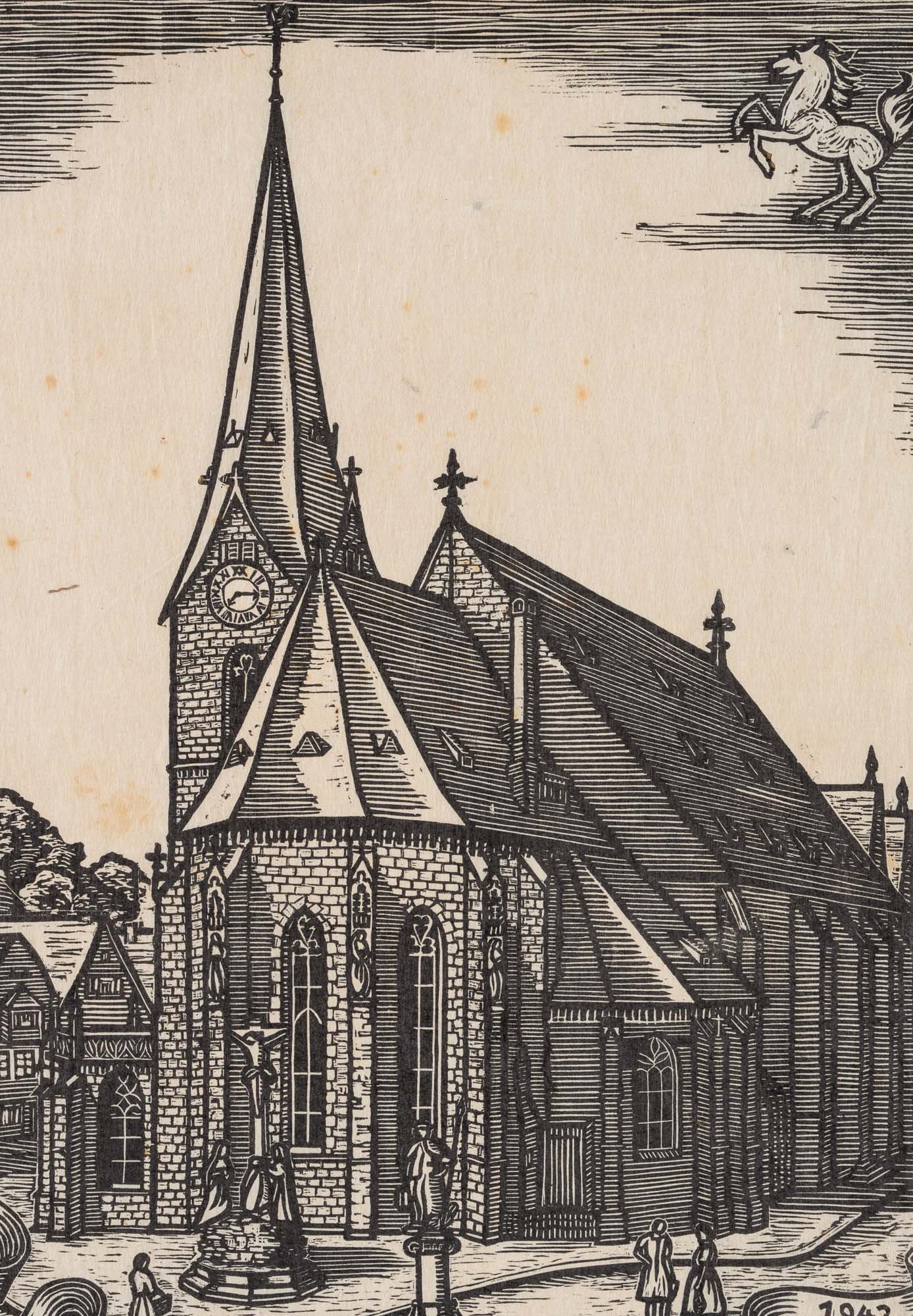 Rvs (20th century), View of the Leonhard Church, Stuttgart, 1942, Woodcut