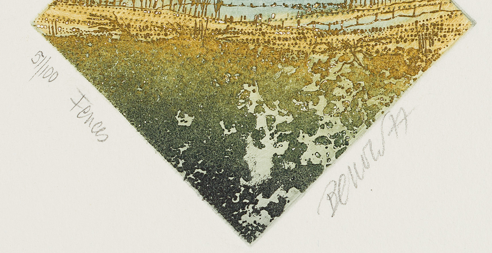 - Inscription: Lower middle inscribed by the artist’s hand: “”5/100 | Fences | Benow 77″”.