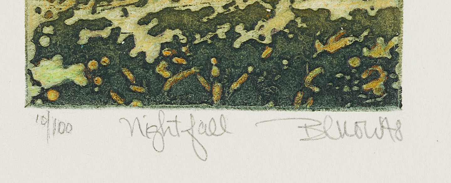 - Inscription: Lower middle inscribed by the artist’s hand: “”10/100 | Nightfall | Benow 78″”.