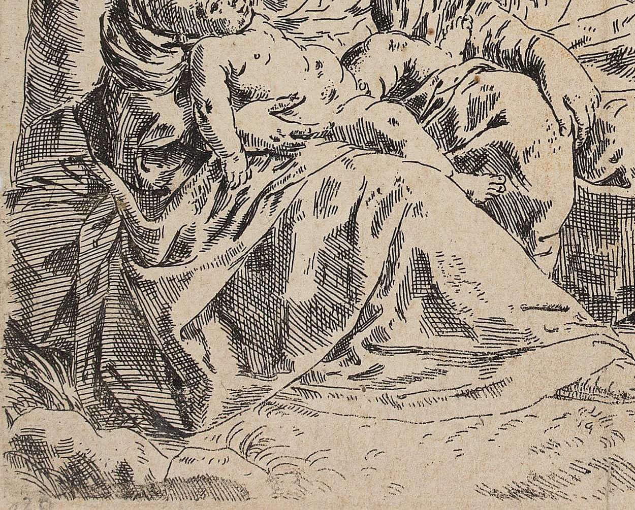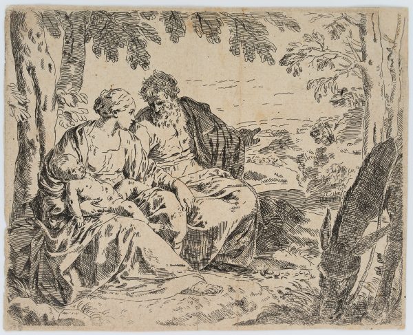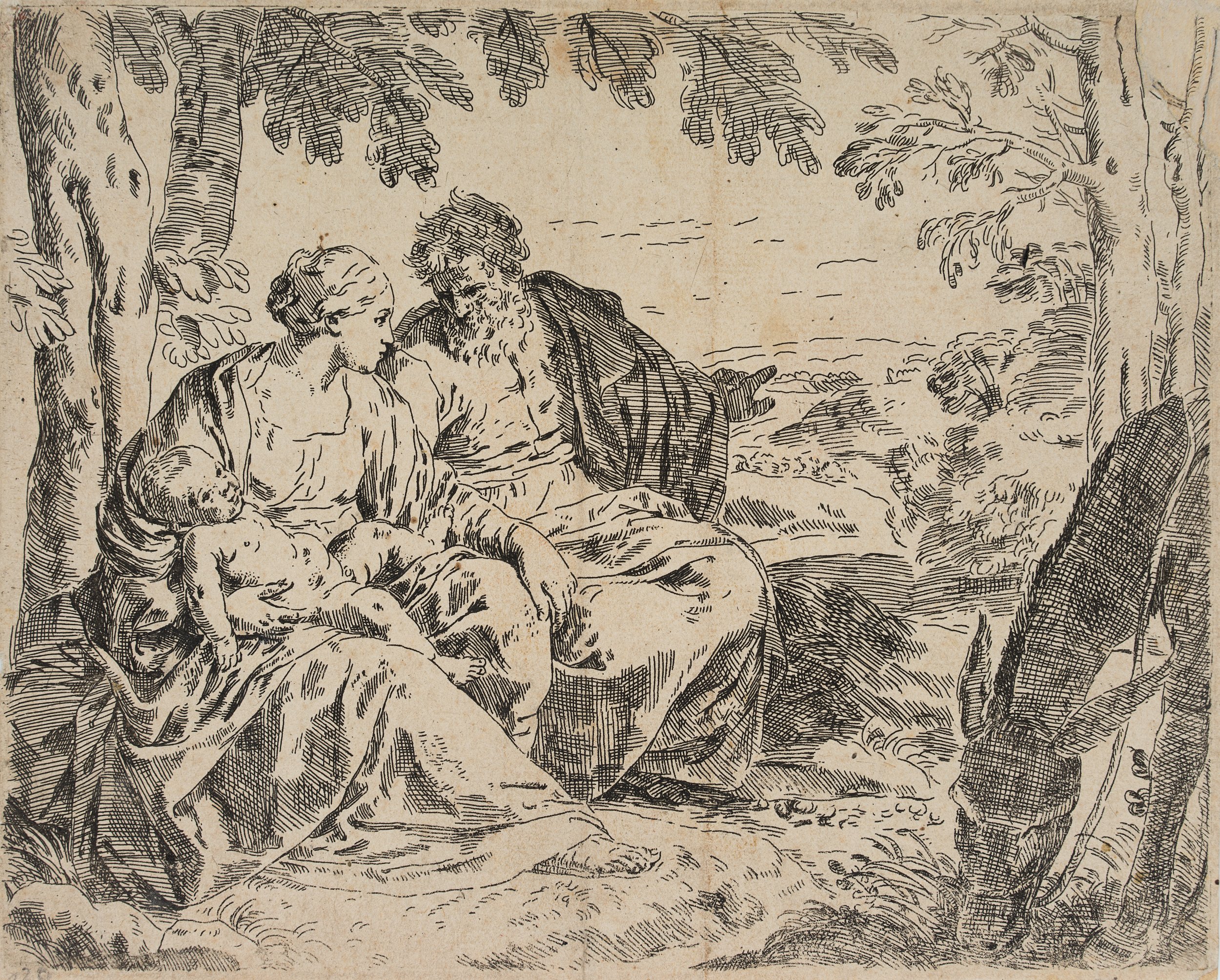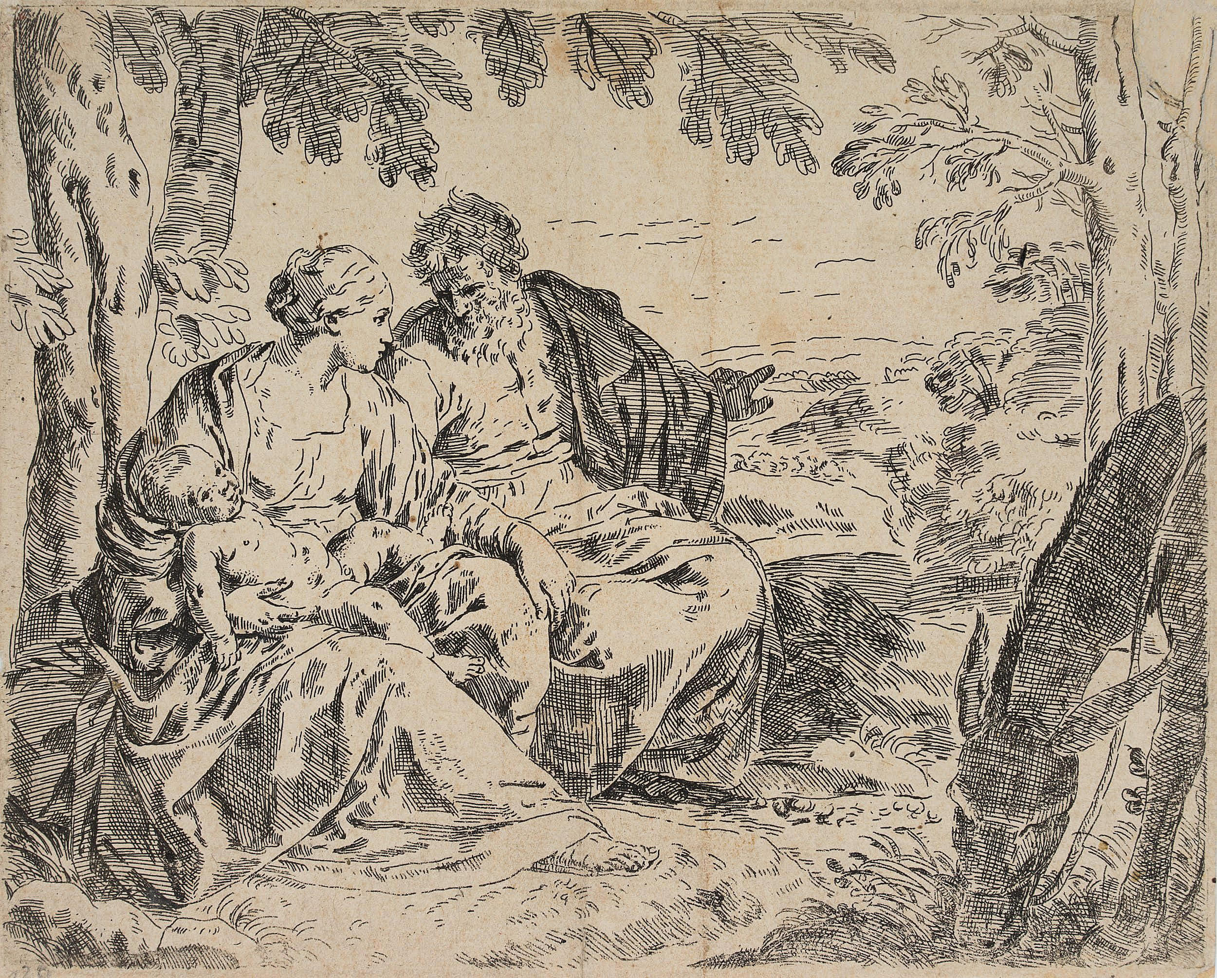 Simone Cantarini (1612 Oropezza – 1648 Verona), Holy Family, resting on the flight to Egypt, c. 1640, Etching