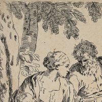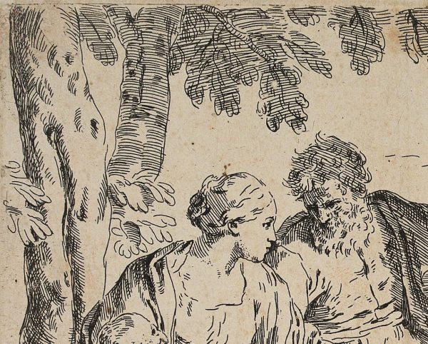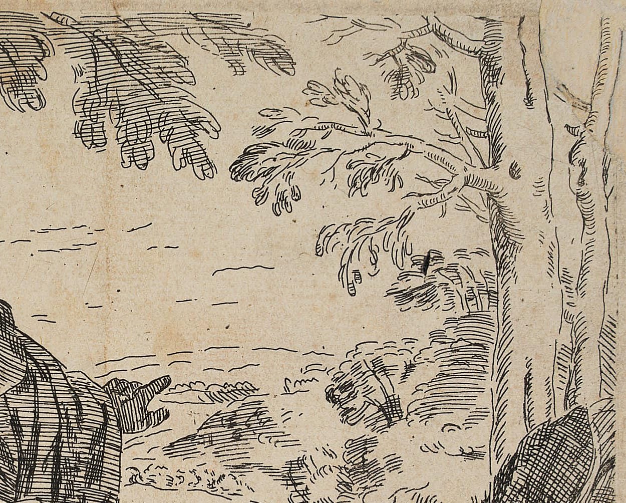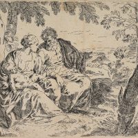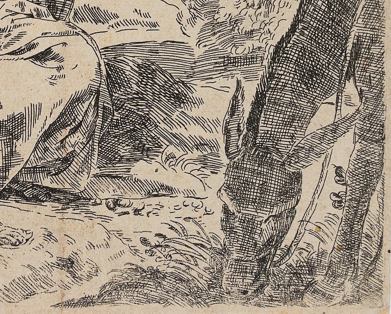 Simone Cantarini (1612 Oropezza – 1648 Verona), Holy Family, resting on the flight to Egypt, c. 1640, Etching