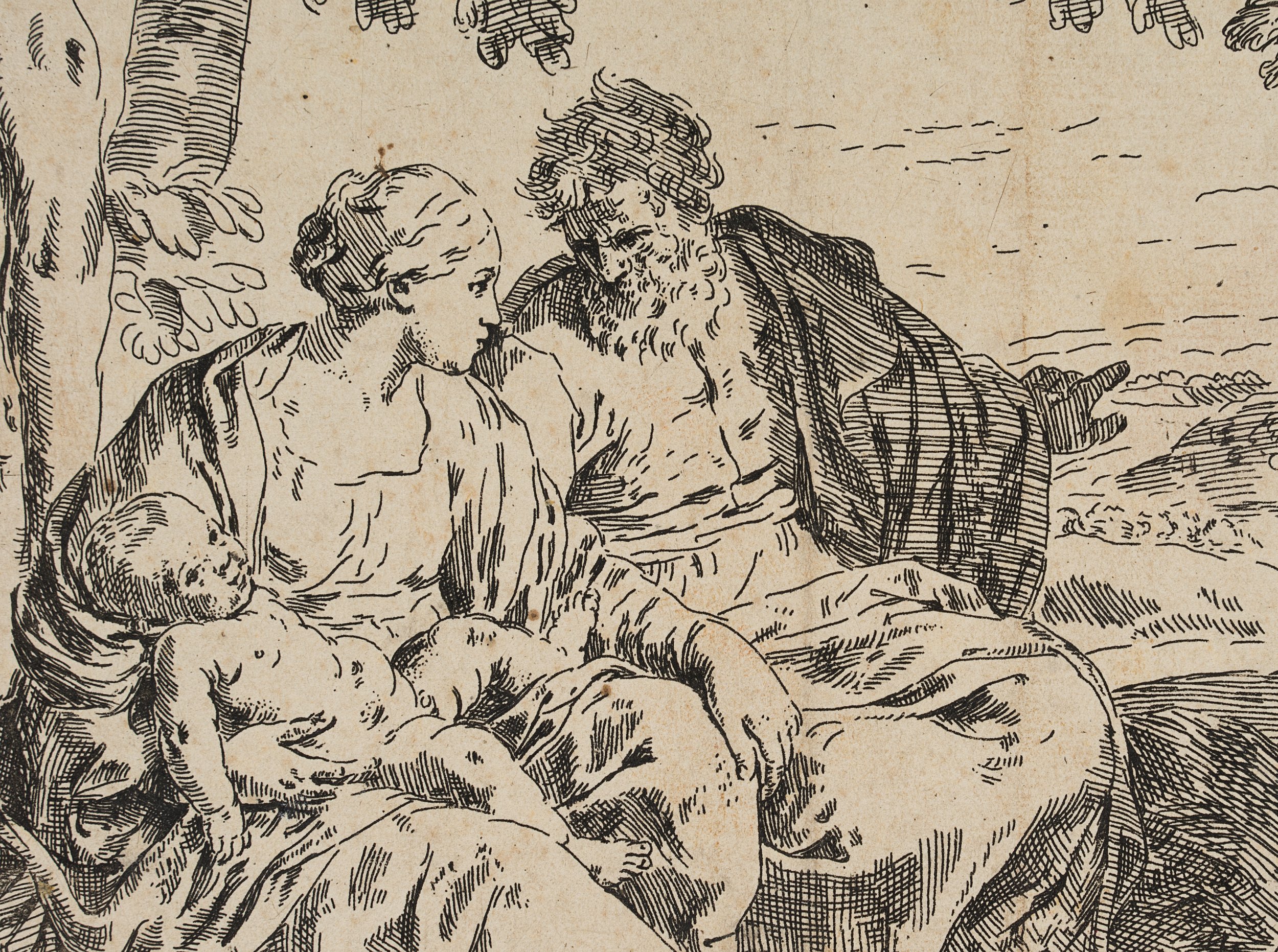 Simone Cantarini (1612 Oropezza – 1648 Verona), Heilige Familie, Rast auf der Flucht nach Ägypten, um 1640, Radierung