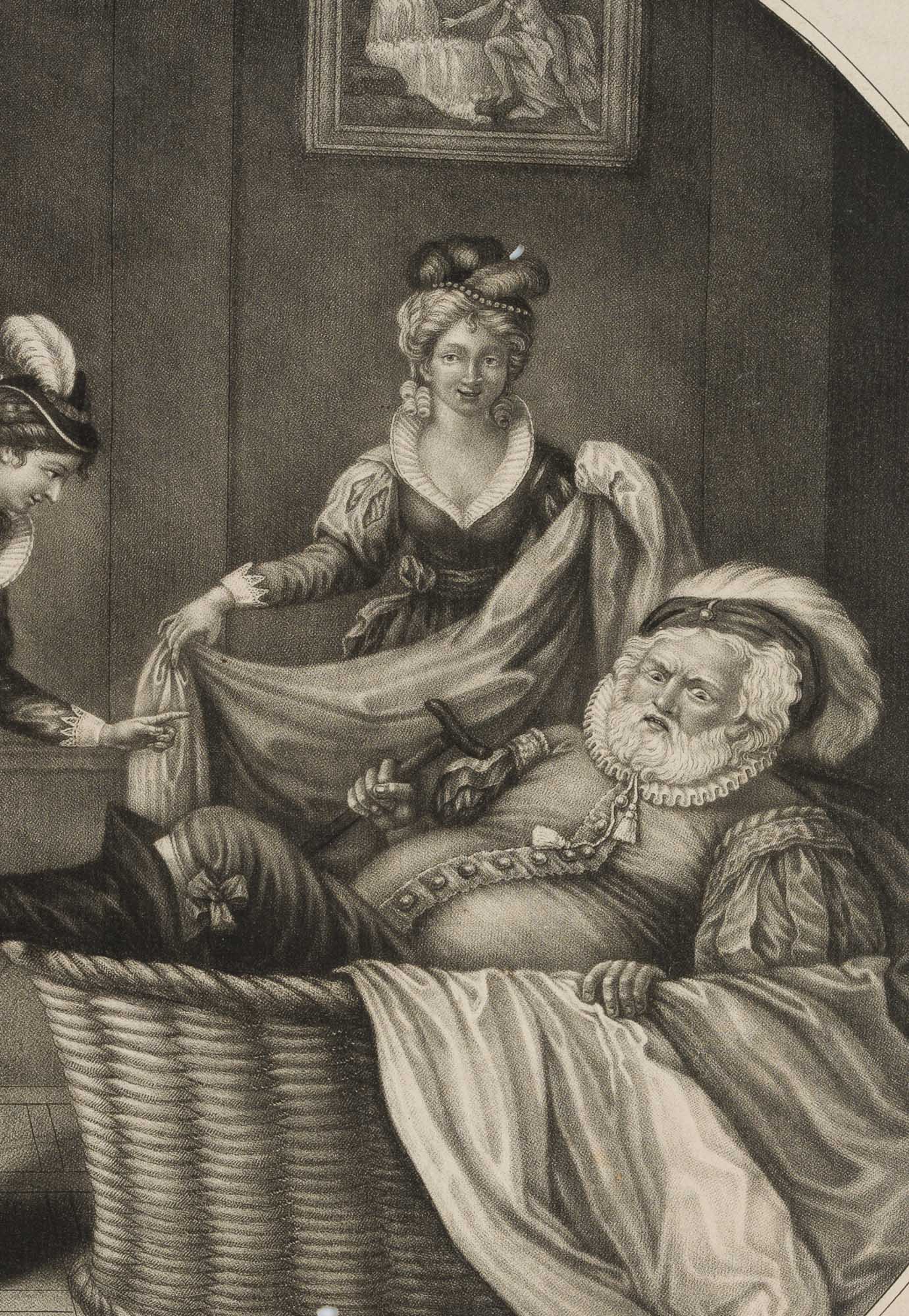 Sylvester Harding (1745 – 1809 ), n HARDING, The merry wives of Windsor, Falstaff im Wäschekorb, 19th century, Mezzotint