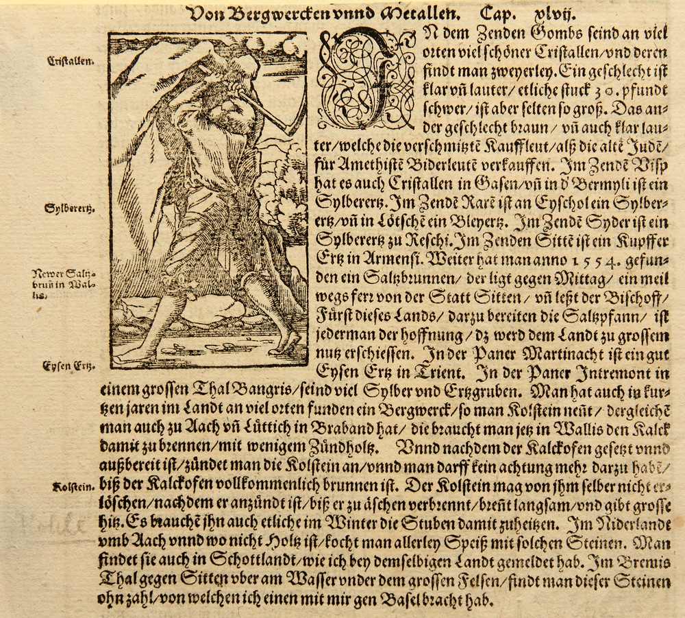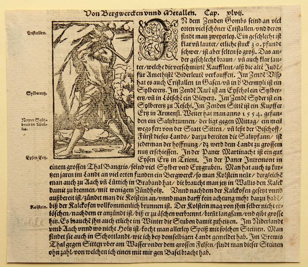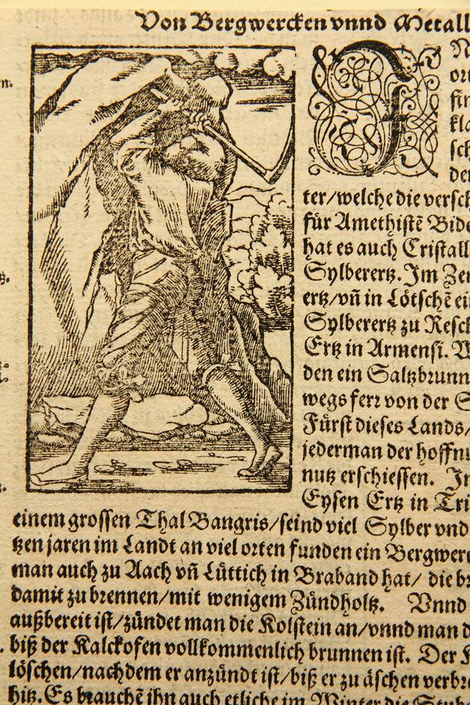 Sebastian Münster (1488 Nieder-Ingelheim – 1552 Basel), Mittelalterliche Darstellung eines Erzhauers, , Holzschnitt
