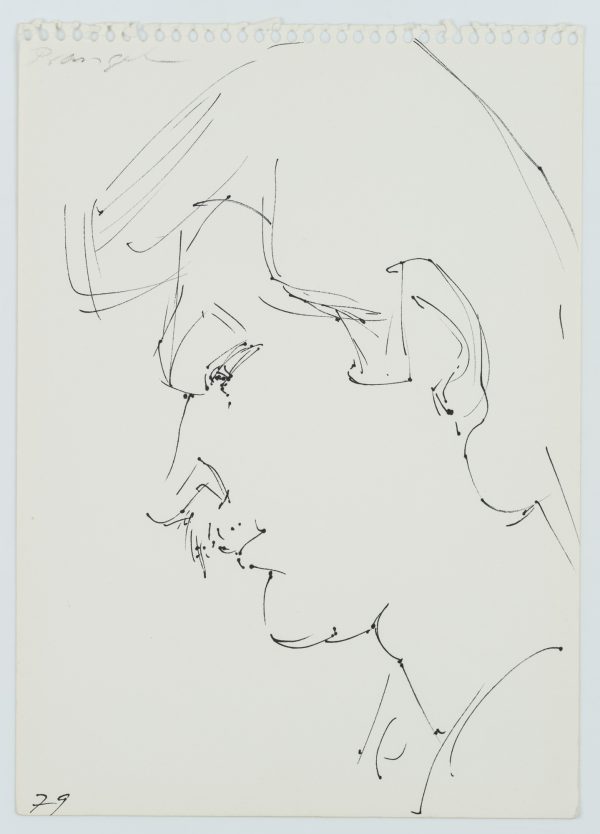 S. Prangel (20. Jahrhundert), Porträt eines Mannes im Profil, 1979, Federzeichnung