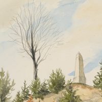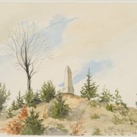 - Description: Geometrically constructed study of a small hill with post-milestone column under a cloudy sky. The beautiful nature and cloud study reveals the mathematical eye of the geographer.