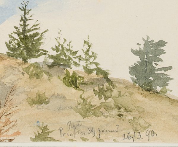 - Bezeichnung: Unten rechts datiert: “26./3. 90”. Unten rechts eigenhändig bezeichnet: “Bei Prießnitzgrund”.
