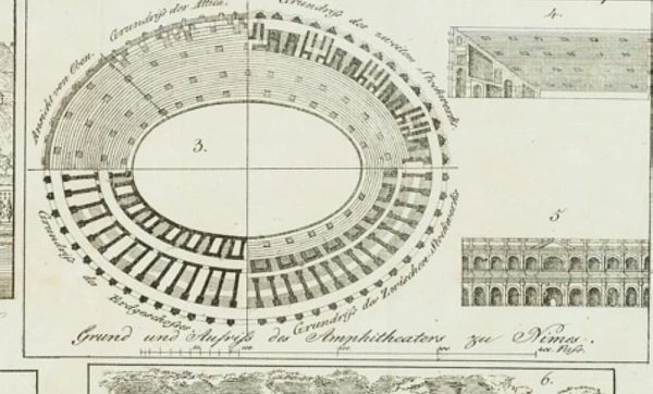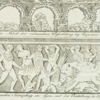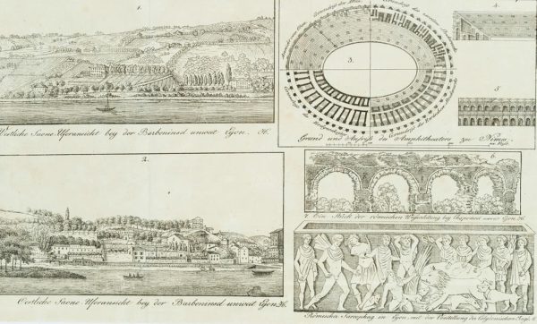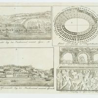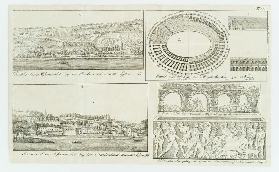 - Beschreibung: Bilder mit Titeln bezeichnet. Blatt ist rechts neben dem Bild zum Amphitheater mit ” Sebastian Wolf 1818″ signiert. Oberhalb mit “Taf. 20” nummeriert.