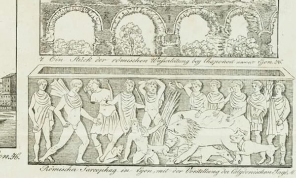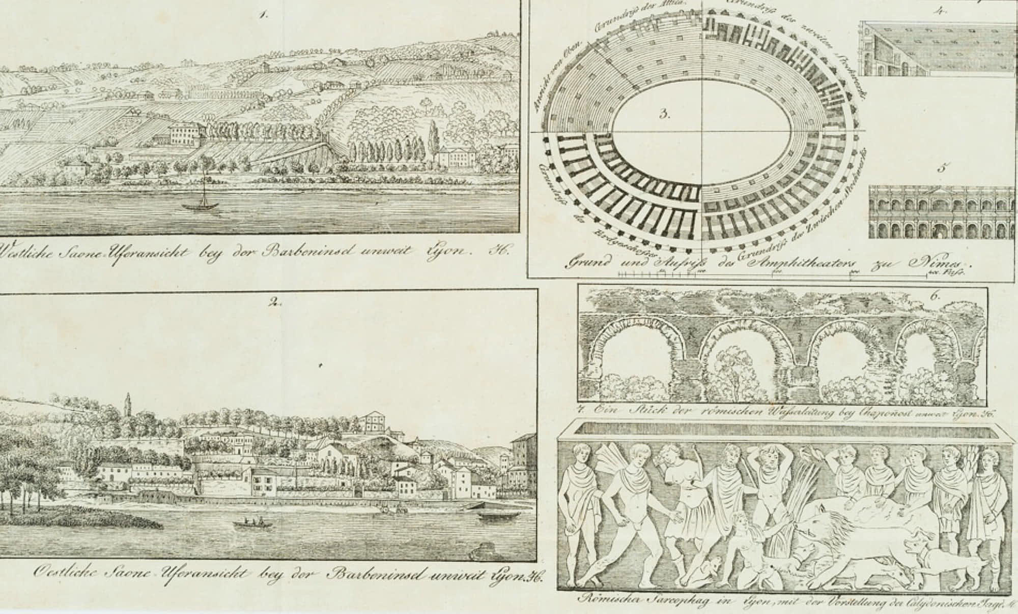 Sebastian Wolf (19. Jahrhundert), Landschaft u. röm. Relikte bei Lyon u. Nimes, 19. Jahrhundert, Lithographie
