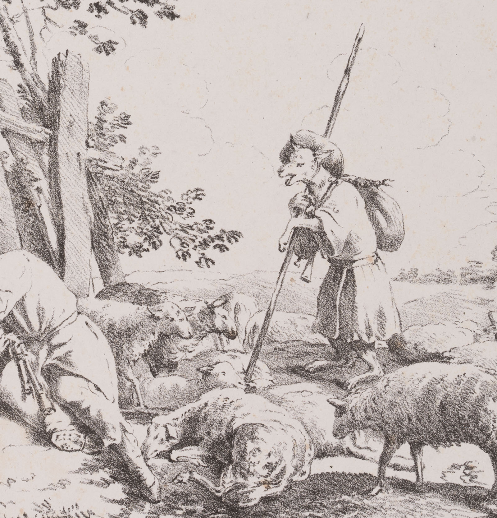 P. Sack (19th century) after Claude Joseph Vernet (1714 Avignon – 1789 Paris), The wolf as shepherd, 19th century, Lithography