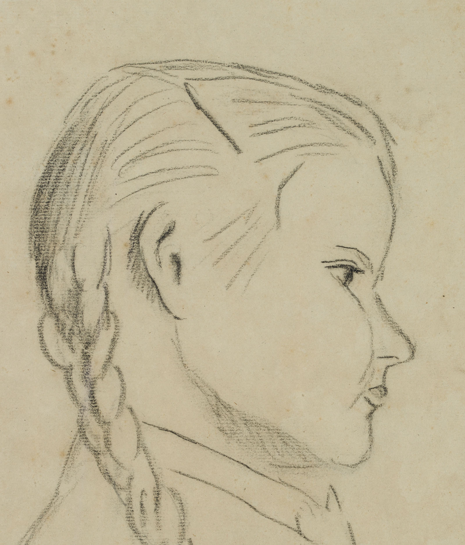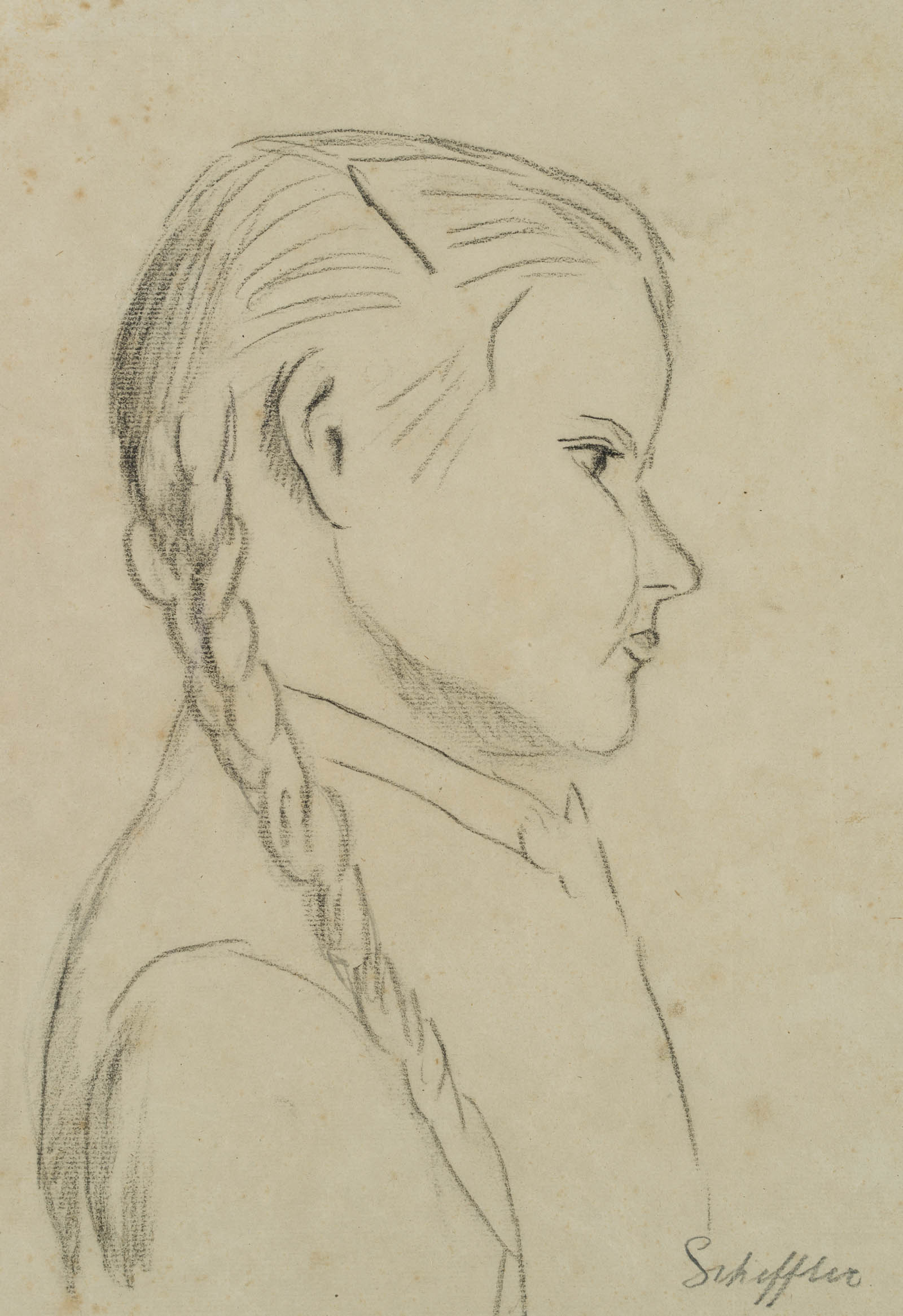 Scheffler (20th century), Portrait of a Girl with Pigtail, c. 1930, Chalk