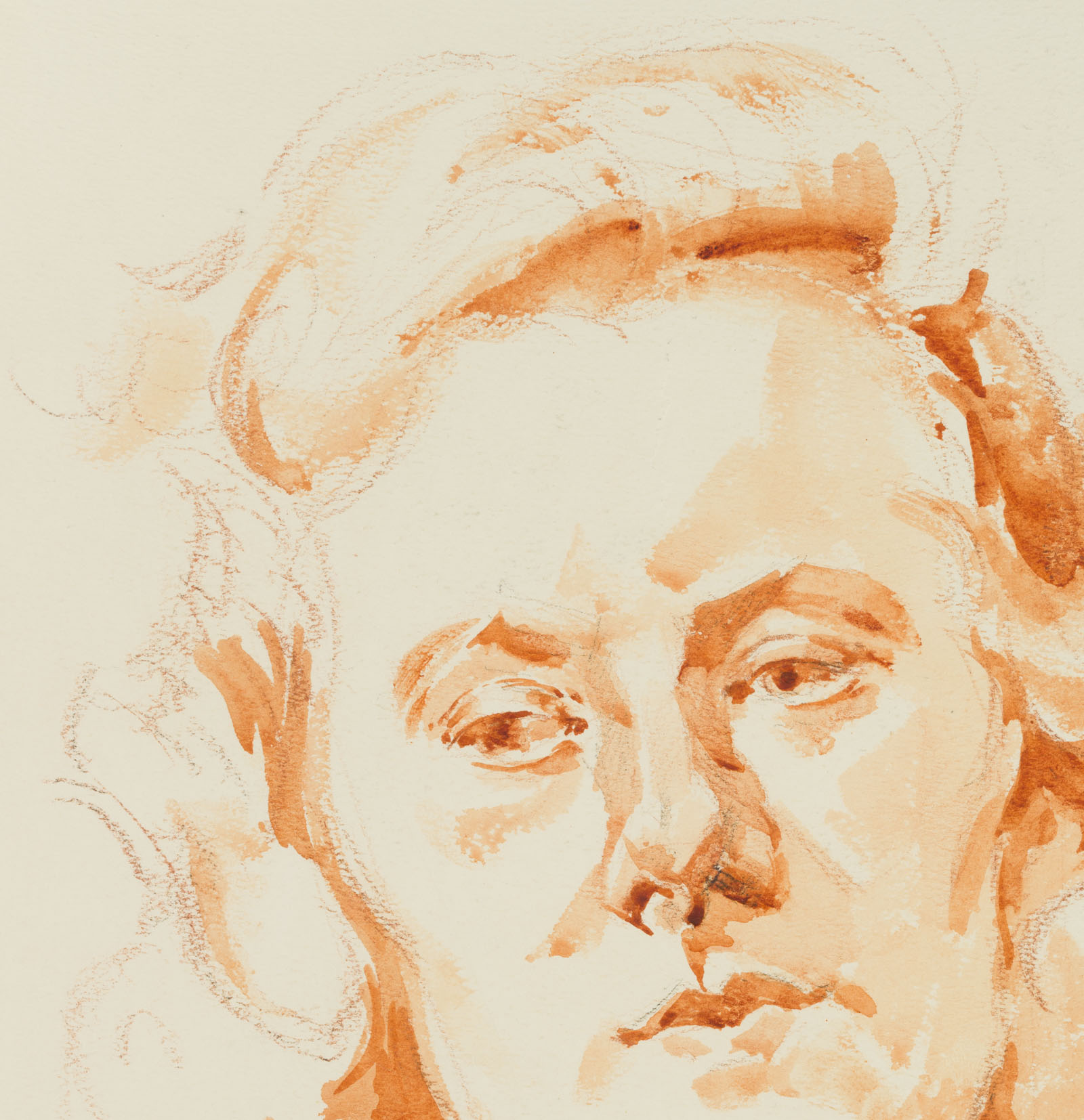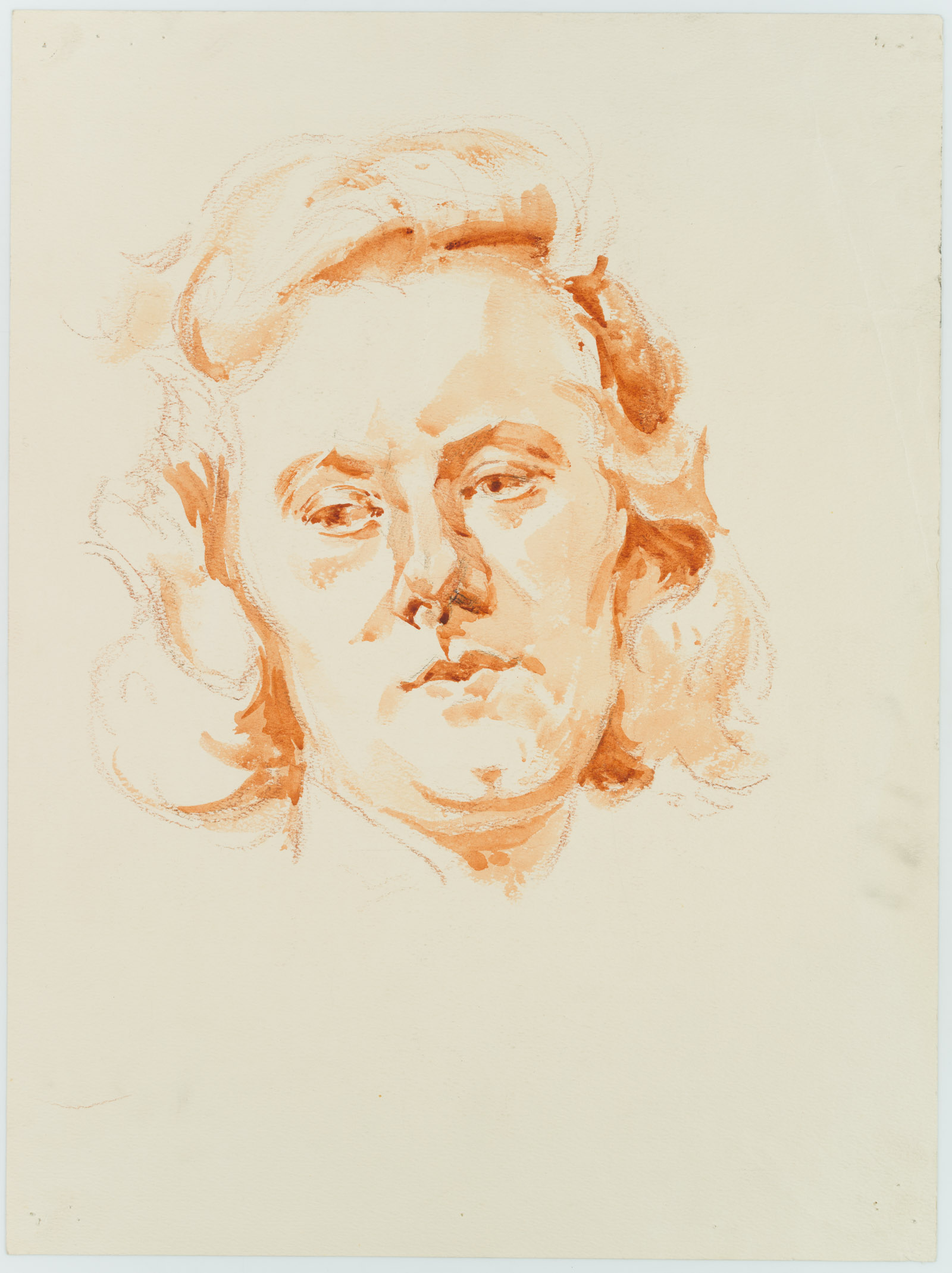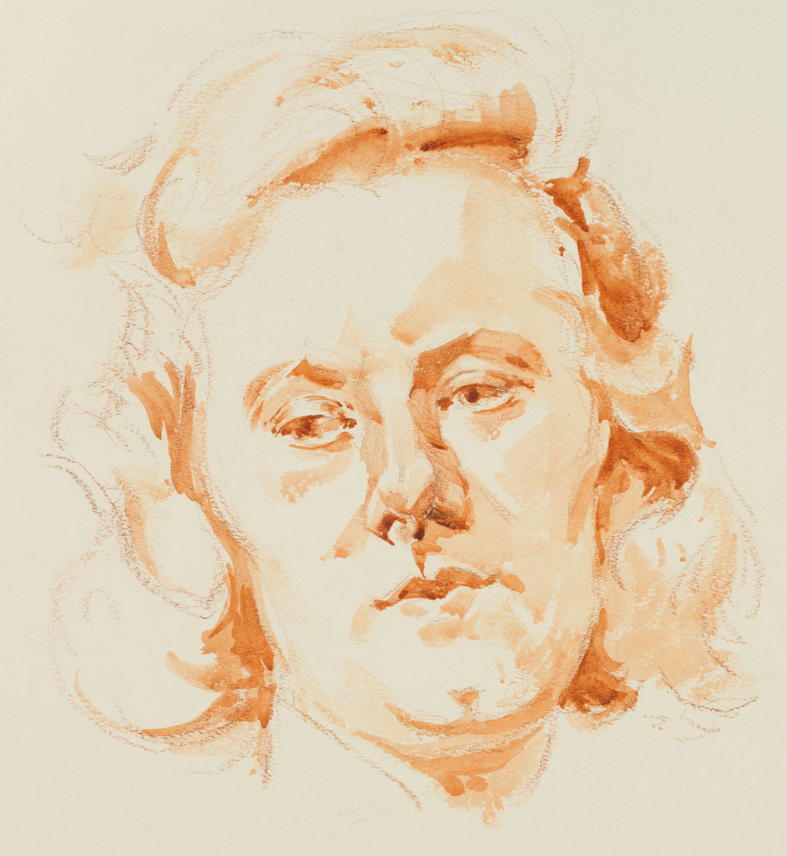 - Description: Without inscription. Portrait of a middle-aged woman in 3/4 profile. Her shoulder-length hair curled, her head slightly tilted, she looks out of the picture space, lost in thought, and thus escapes the gaze of the viewers.