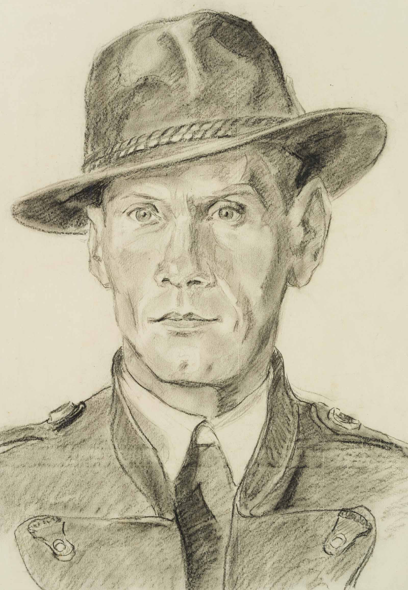 Scheffler (20. Jahrhundert), vermutl. Selbstporträt mit Hut, um 1930, Kreide