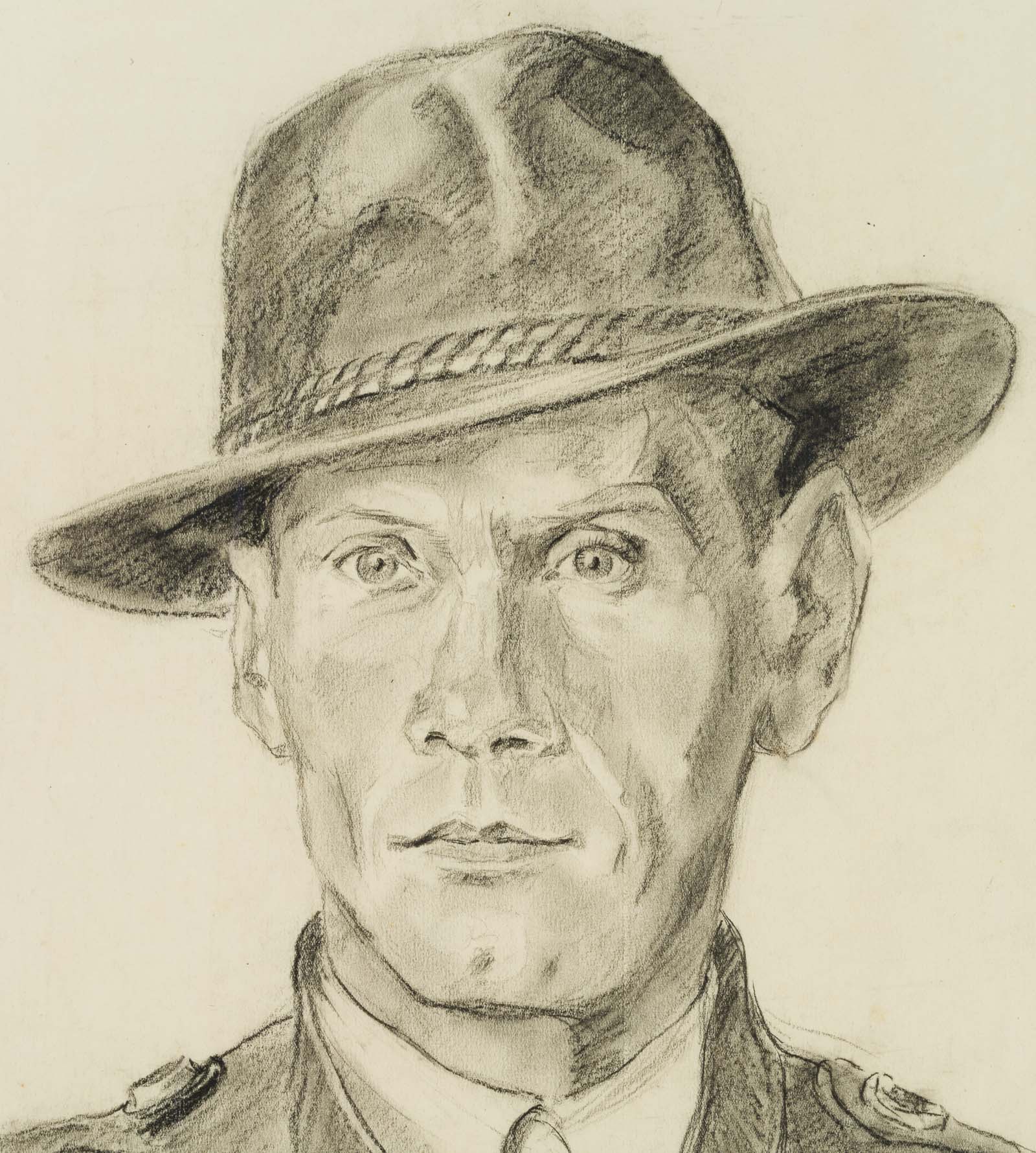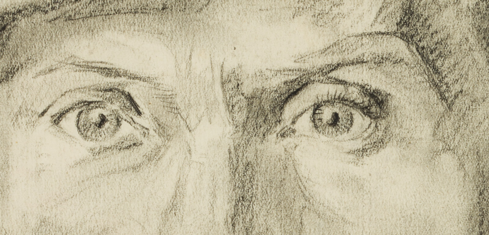 - Beschreibung: ohne Bezeichnung. En face Porträt eines Mannes. Gekleidet in einen dunklen Mantel, trägt der Mann einen Hut mit breiter Krempe. Er blick den Betrachtenden aufmerksam entgegen.