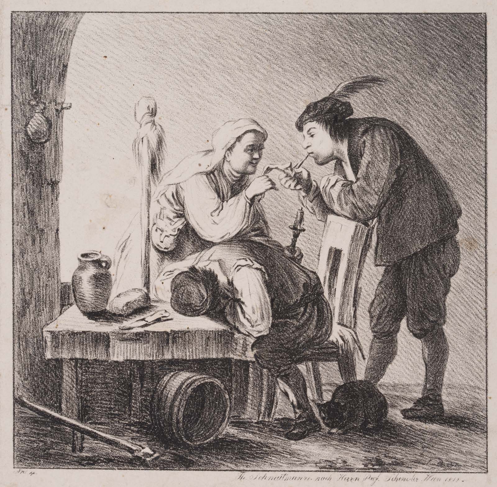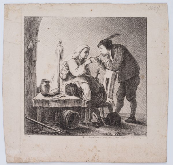 Thomas Schnaitmann (1796 Hellbach near Stuttgart – 1821 Vienna) after Johann Josef Schindler (1777 St. Pölten – 1836 Vienna), Tavern scene, pipe smokers, 1815, Etching