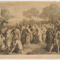 Das Blatt stellte die Jahresgabe für 1862 des Münchener Kunstvereins an seine Mitglieder dar. - Schlagworte: Nibelungenlied, Nibelung, Burgunden, Siegfried, Worms, Xanten, Gunther, Hagen von Tronje, Historie, Mode, Deutschland, Romantik, 1850-1899