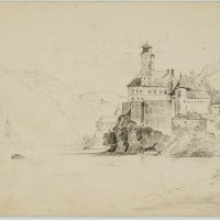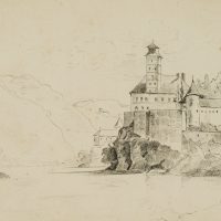 Schönbüchl (19th century), View of a fortress on the water, 19th century, Indian ink