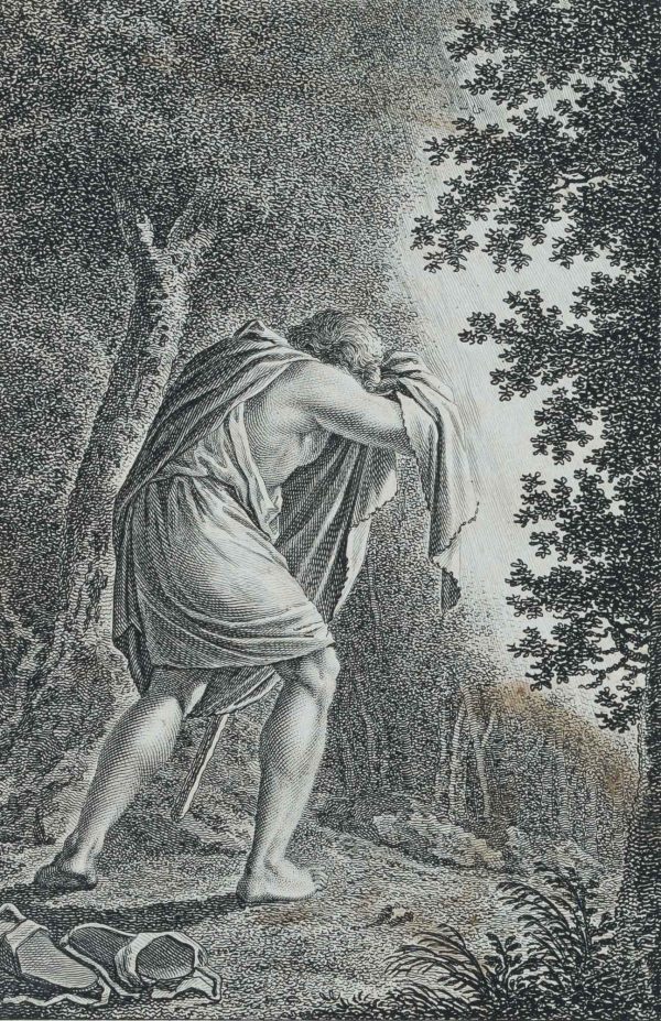 Christian Schule (1764 Copenhagen – 1816 Leipzig) after Johann David Schubert (1761 Dresden – around 1822 ibid.), Moses in Midian, 19th century, Copper engraving