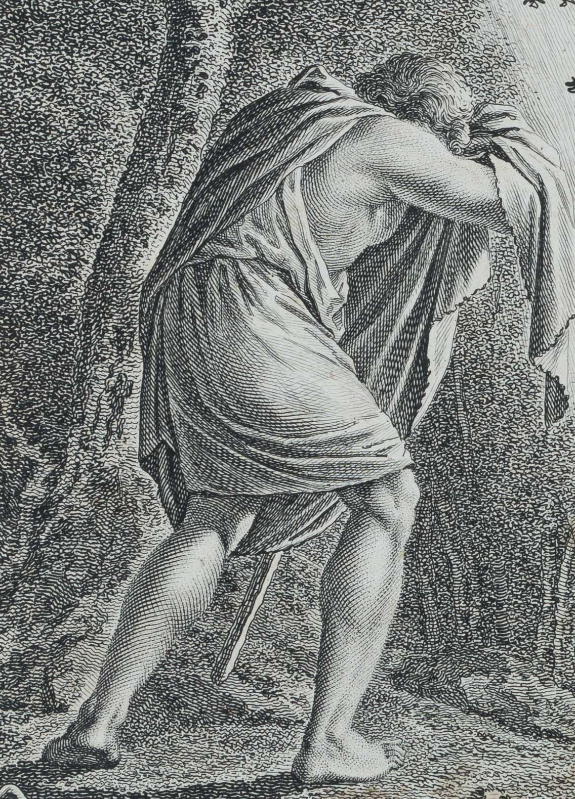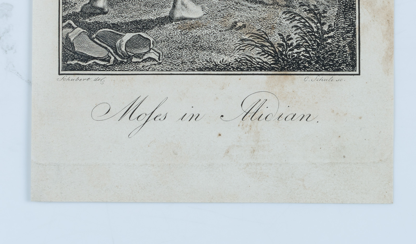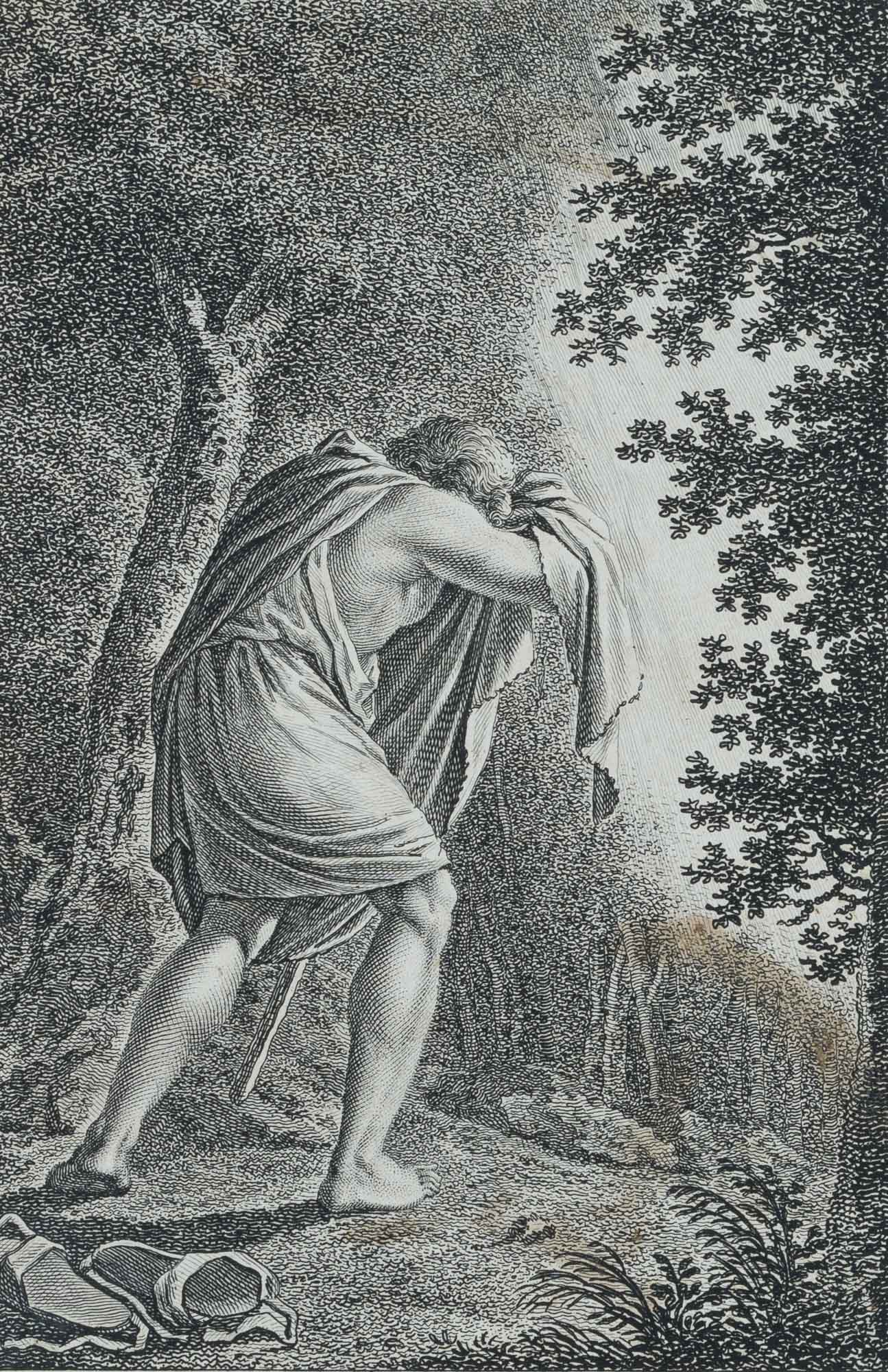 Christian Schule (1764 Kopenhagen – 1816 Leipzig) nach Johann David Schubert (1761 Dresden – um 1822 ebd.), Moses in Midian, 19. Jahrhundert, Kupferstich