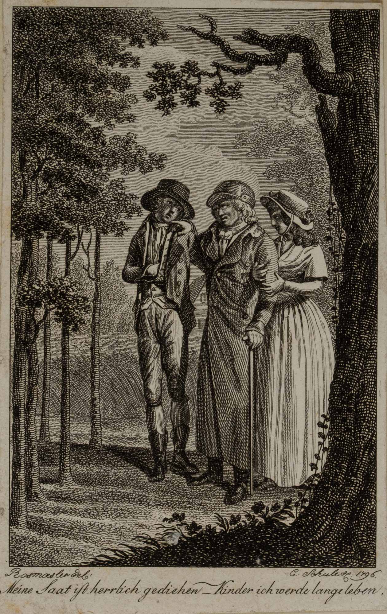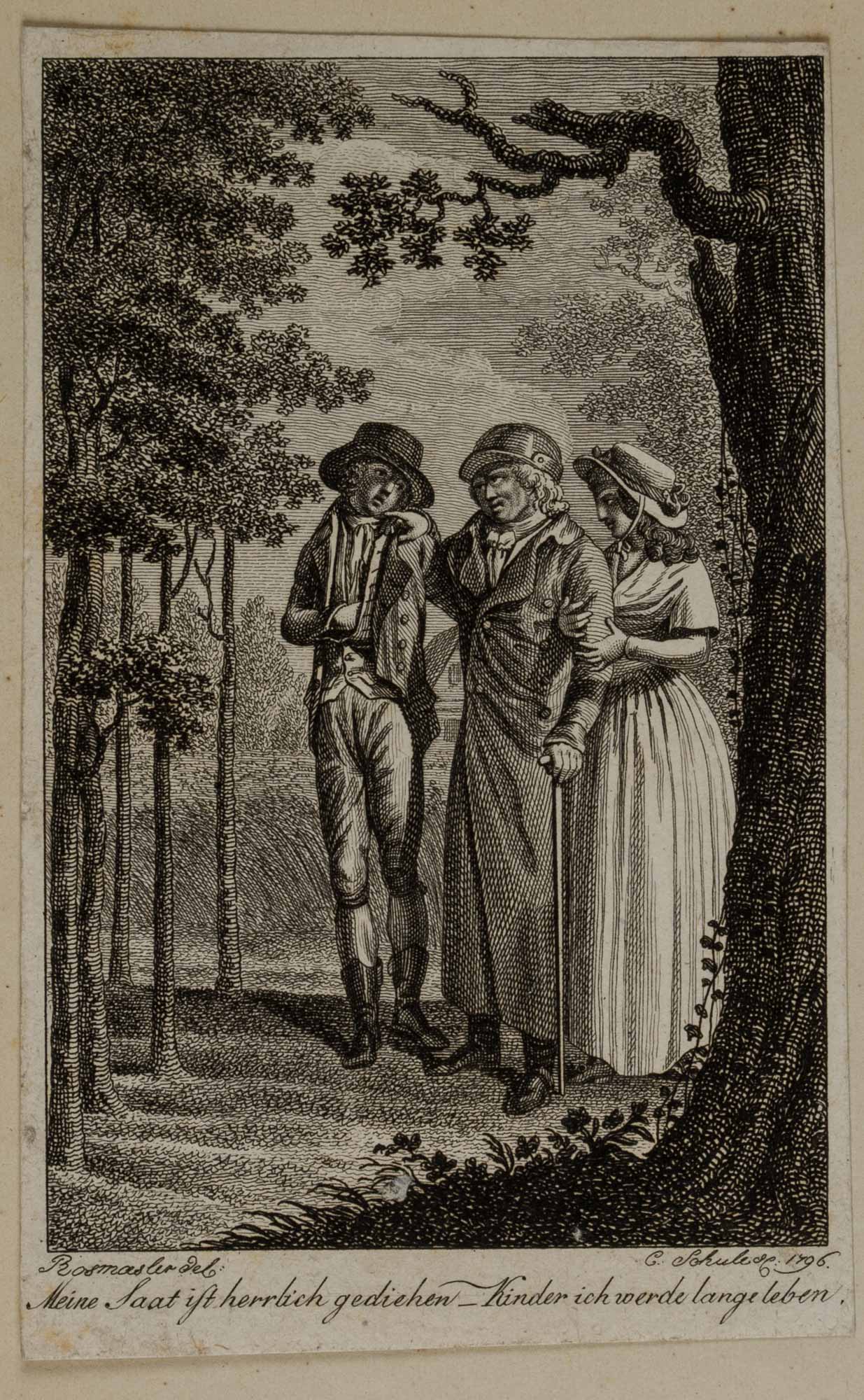 C. Schule (1791 – 1874 ) nach Johann August Rosmaesler (1752 Leipzig – 1783 Dresden), Vater mit Tochter und Sohn. Buchillustration, Sammlung Hasselmann, 1796, Kupferstich