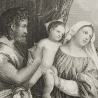 - Description: Signed “Tizian pinxt / A. Schultheiss sc.” below the depiction. Below titled in two languages. Der Kunstverein; New Series: Steel engraving collection of the most exquisite paintings of the Dresden Gallery. Together with text by Adolph Görling; published by the English Art Institute of A. H. Payne (Leipzig and Dresden).
