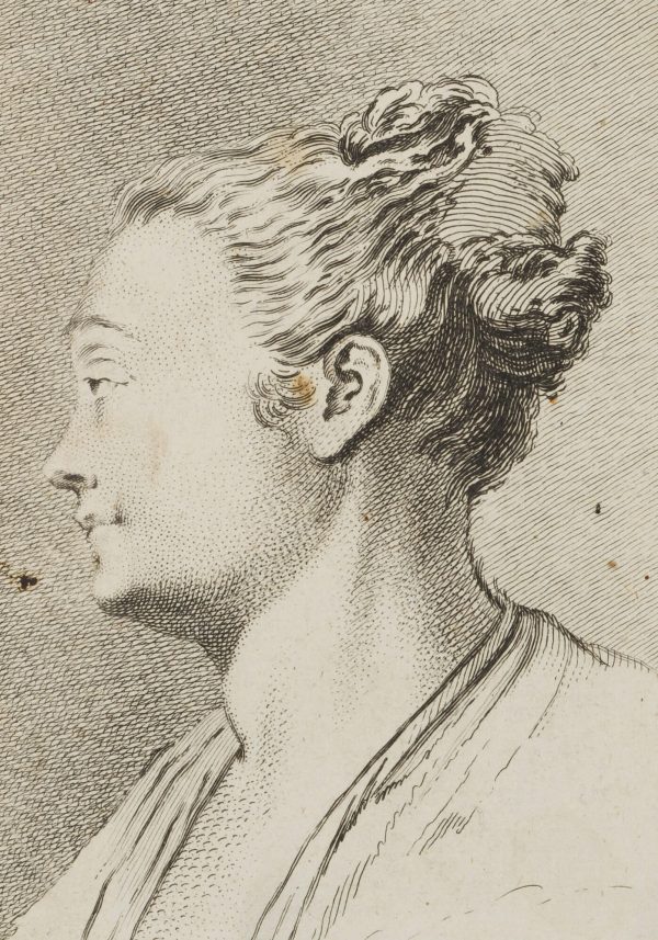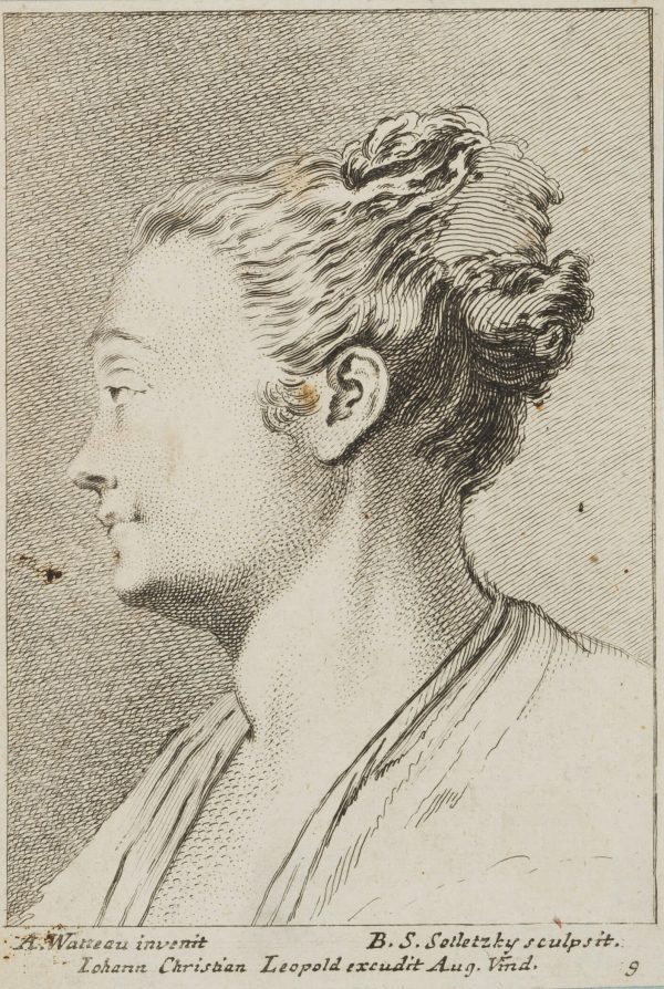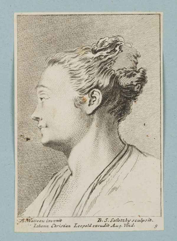 Balthasar Sigmund Setletzky (1695 Augsburg – 1771 ibid.) after Antoine Watteau (1684 Valenciennes – 1721 Nogent-sur-Marne), Head study of a woman, 18th century, Etching