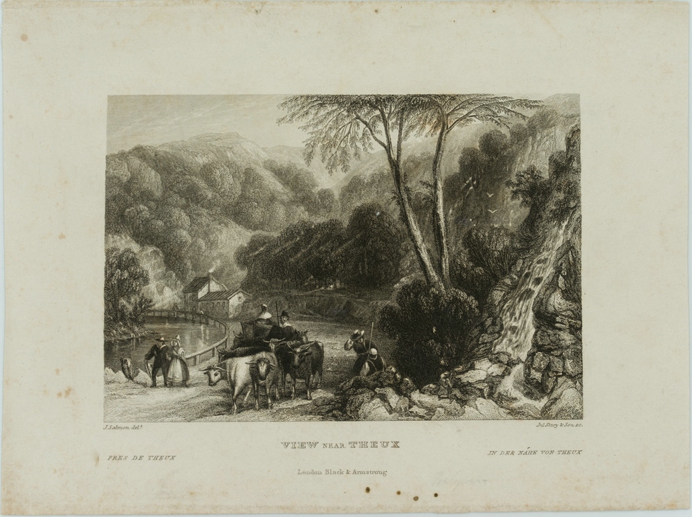 - Description: inscribed “J. Salmon del.t.”, “Jn. Shury&Son sc.”, titled below “View near Theux/Pres de Theux/In der Nähe von Theux”.