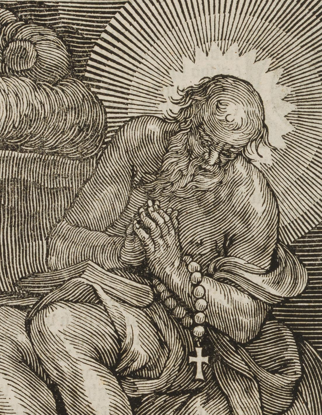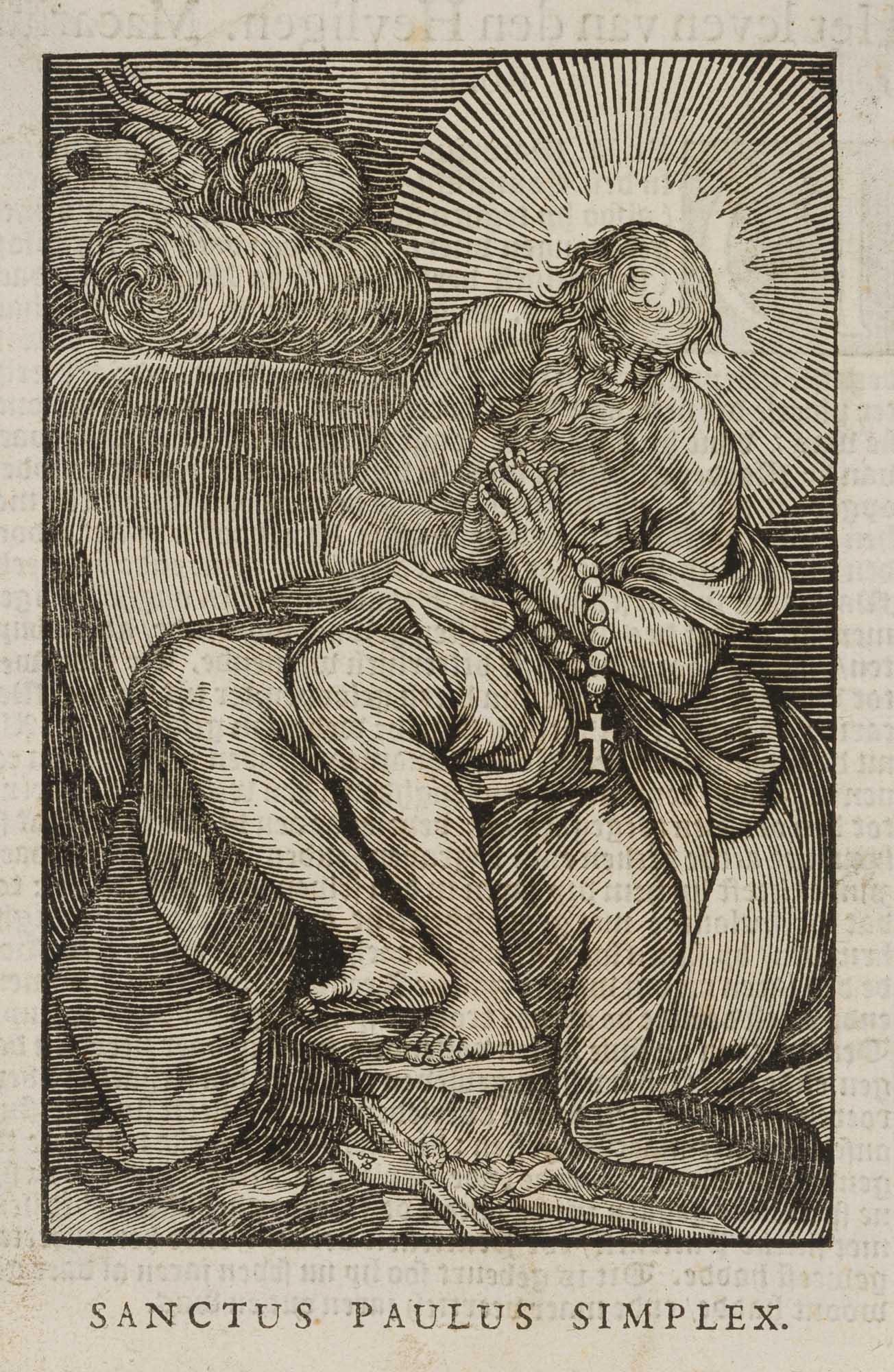 Christoffel van Sichem d. J. (1581 Basel – 1658 Amsterdam) nach Abraham Bloemaert (1566 Dordrecht – 1651 Utrecht), “Sanctus Paulus Simplex”, Paulus von Theben, ägyptischer Einsiedler, 1644, Holzschnitt