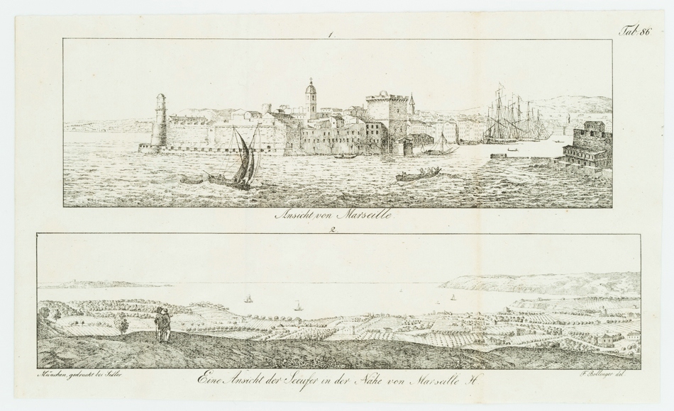 Joseph Sidler (19. Jahrhundert) nach Ferdinand Bollinger (19. Jahrhundert), Ansicht d. Seeufer v. Marseille, 19. Jahrhundert, Lithographie