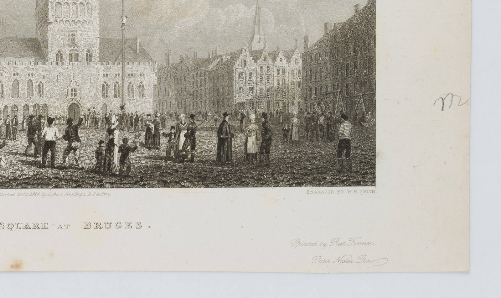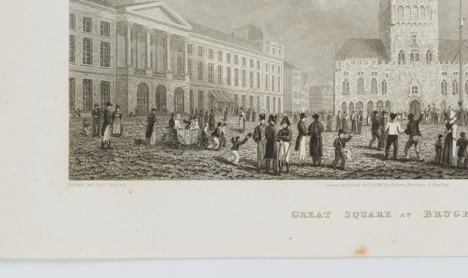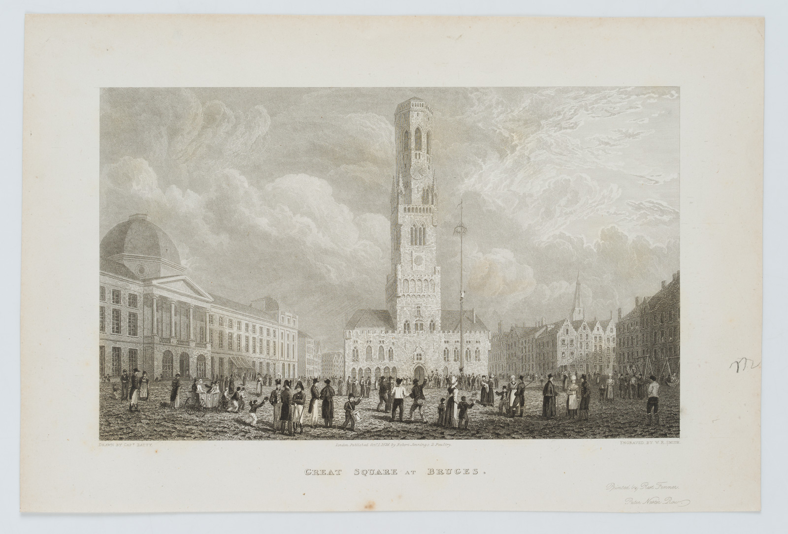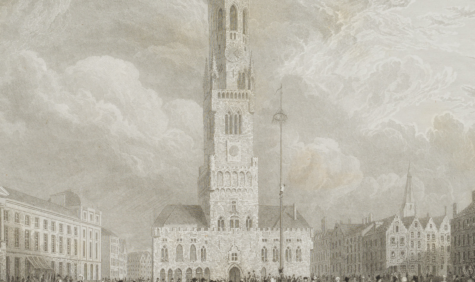 W.R. Smith (before 1832 London – after 1851 ibid.) after Robert Batty (1789 London – 1848 ibid.), Great Square with Belfry in Bruges, 1824, Steel engraving