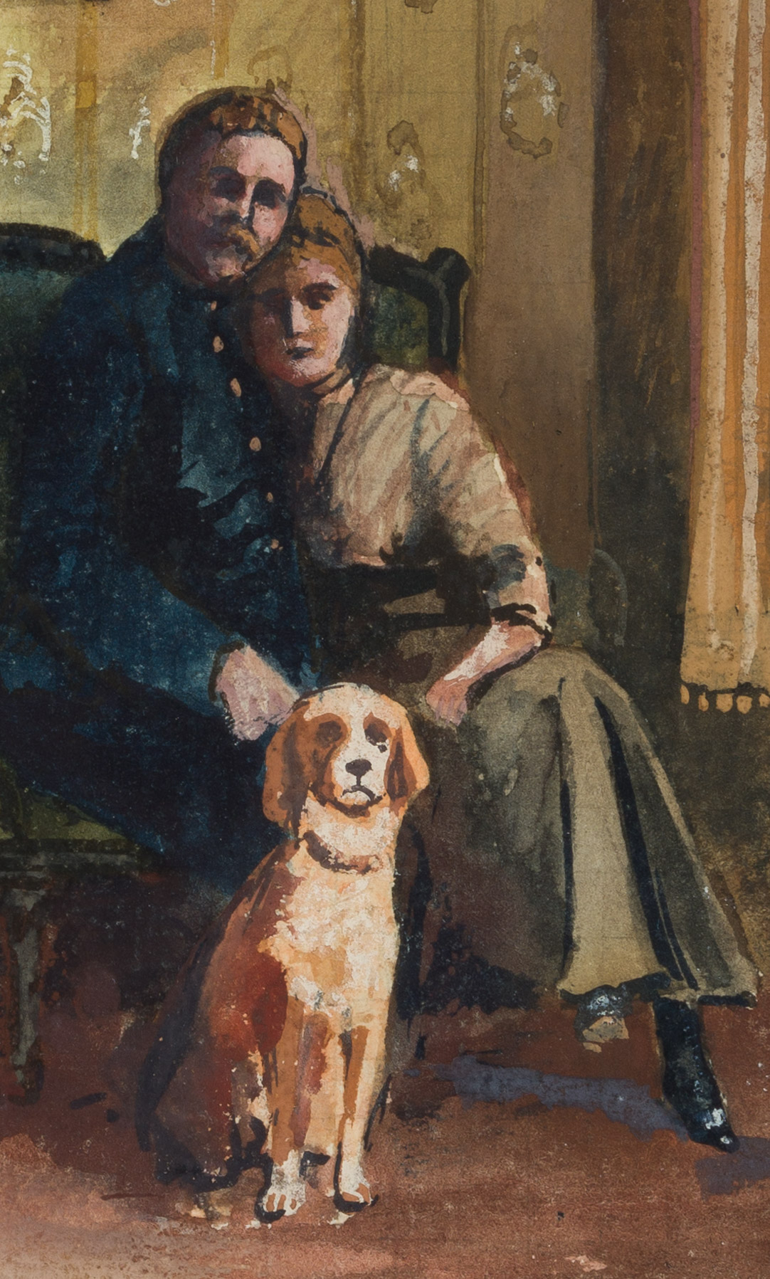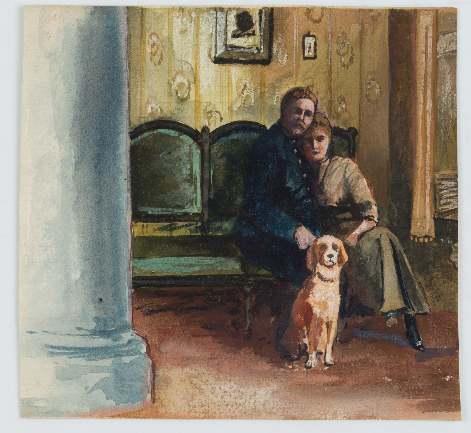 Solmytschegopak (20th century), Interior scene Idyll in a threesome (dog),1916, 1916, Watercolor