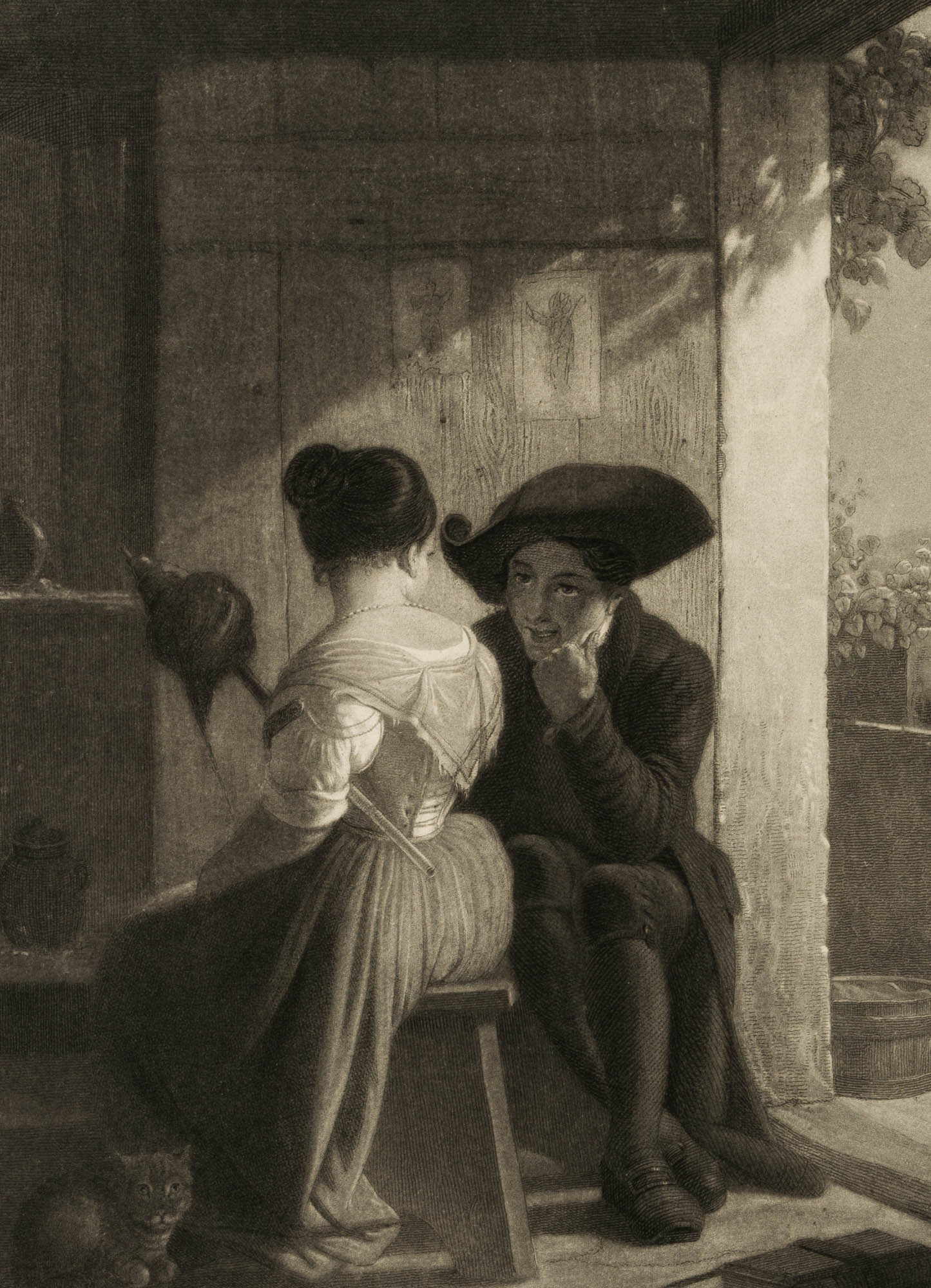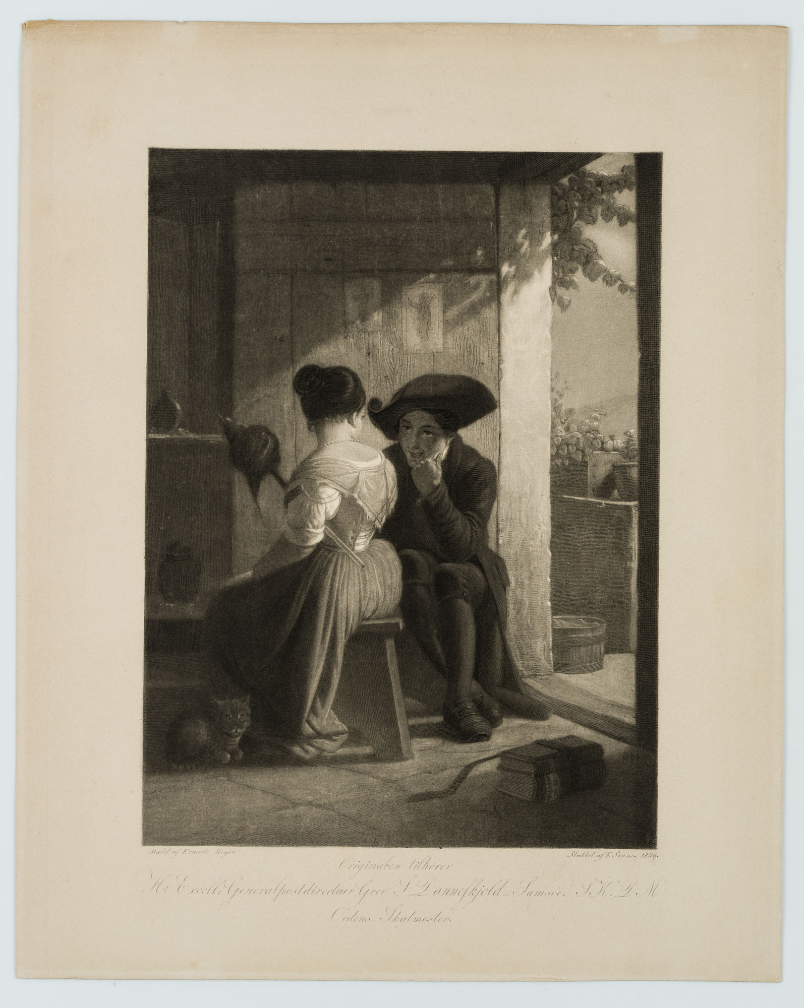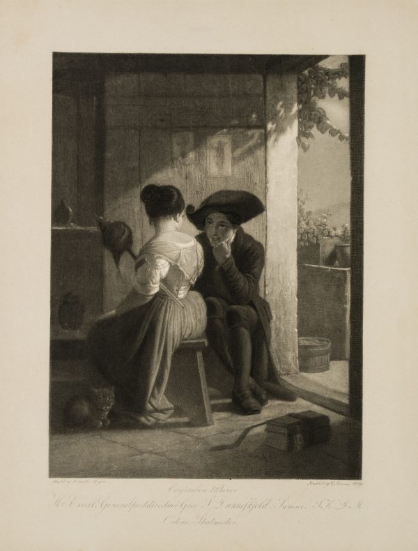 Carl Edvard Sonne (1804 Birkerød – 1878 Kopenhagen) nach Ernesto Meyer (19. Jahrhundert), Die Verliebten, 1859, Mezzotinto