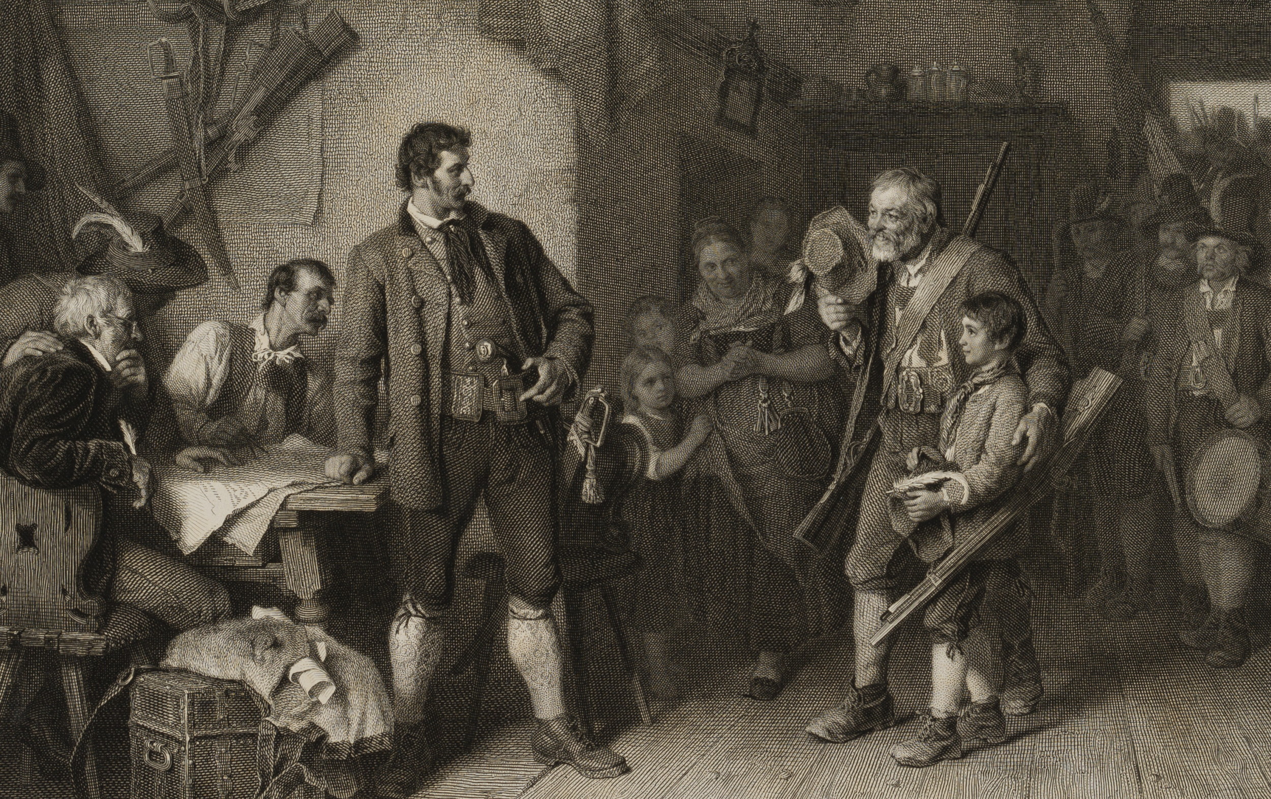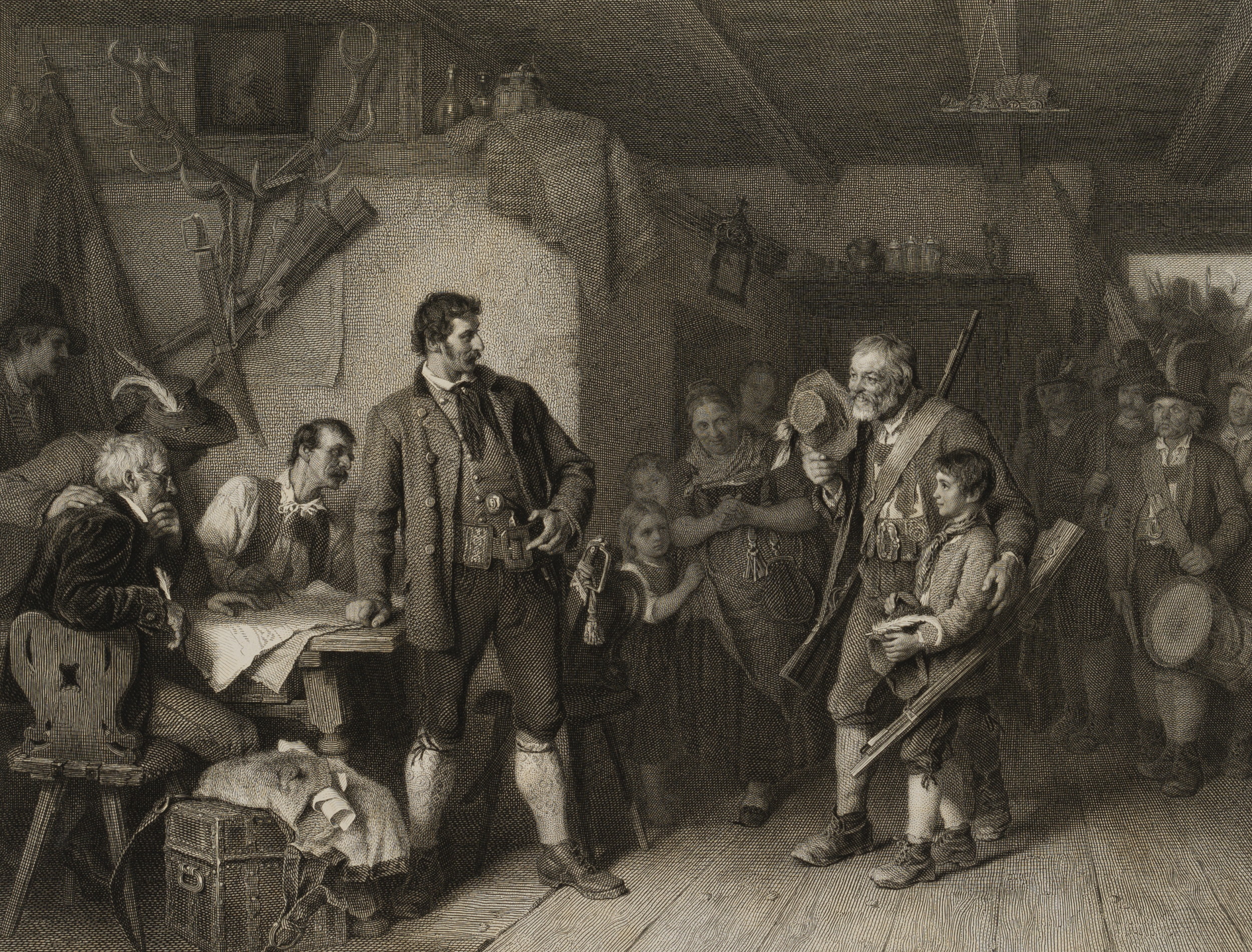 Johannes Sonnenleiter (1825 Nuremberg – 1907 Vienna) after Franz von Defregger (1835 – 1921 ibid.), In the inn parlour Speckbacher and his son Andreas, c. 1871, Etching