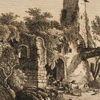- Keywords: Herd, Cattle, Ruin, Tower, Shepherd, Landscape, Idyll, Arcadia, Print, Germany, 19th century, Romanticism, Landscape, Germany,