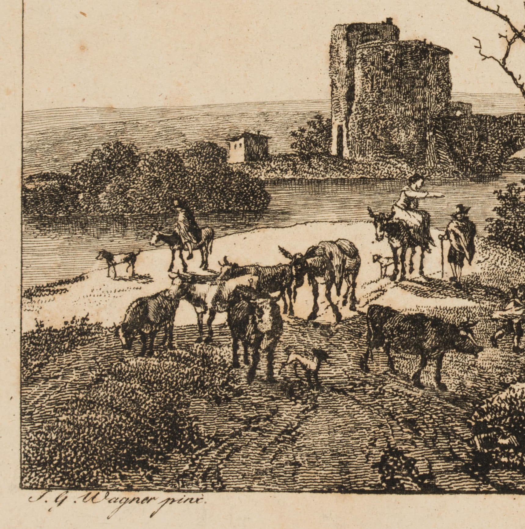 - Schlagworte: Herde, Vieh, Küste, Ruine, Turm, Hirte, Landschaft, Idyll, Arkadien, Druckgrafik, Deutschland, Landschaft, Natur, Deutschland, Romantik, 1750-1799
