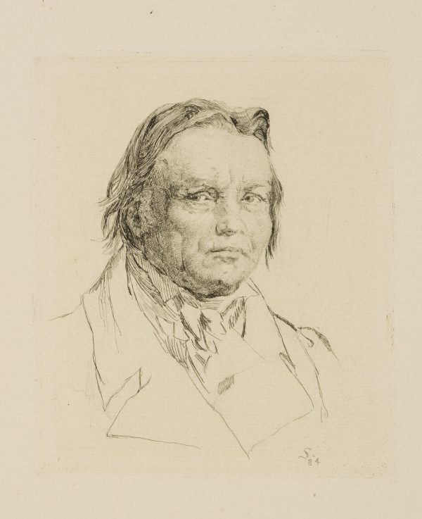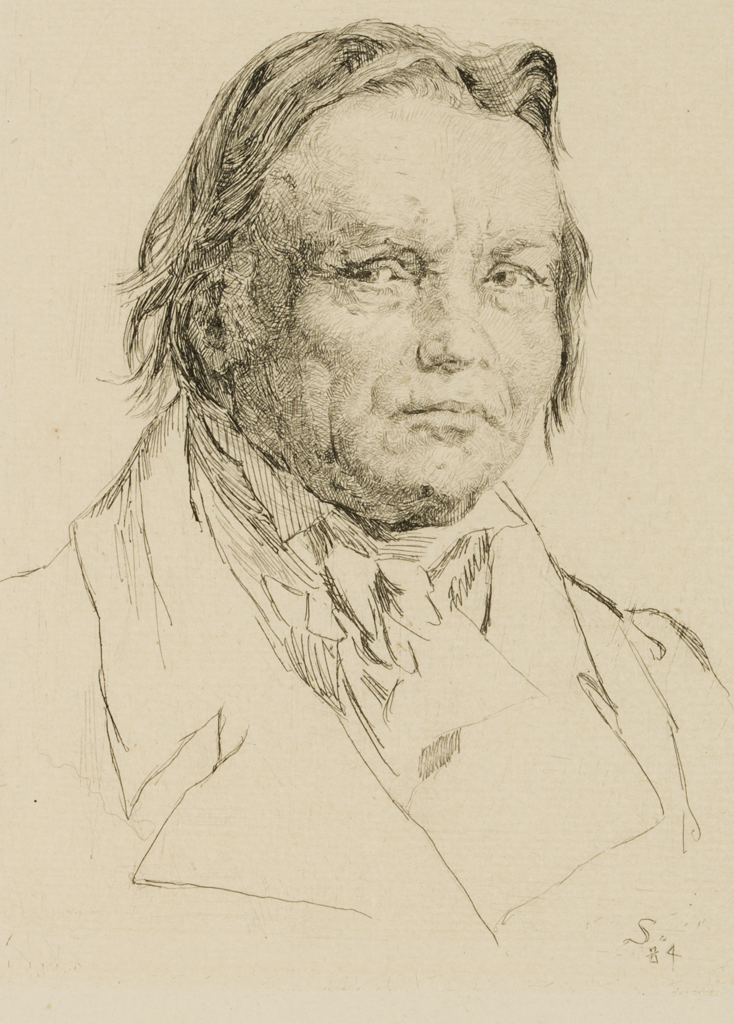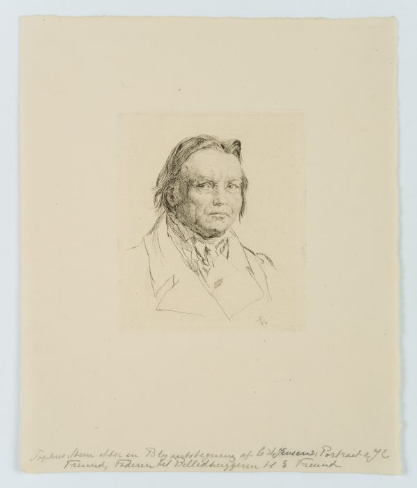 Sophus Stein (1862 Kopenhagen – 1941 ebd.) nach Christian Albrecht Jensen (1792 Bredstedt – 1870 Kopenhagen), Brustporträt von dem Vater des dänischen Bildhauers Hermann Ernst Freund, um 1930, Radierung