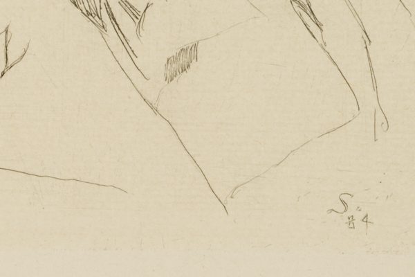 - Inscription: Monogrammed and dated “S 84” in the lower right corner of the printing plate. Inscribed below in another hand: “Sophus Stein [after?] a pencil drawing [by?] A. Jensen, portrait of J. C. Freund, [father?] of the sculptor “H. E. Freund”. With watermark on the left side of the paper and an embossed stamp on the lower margin.