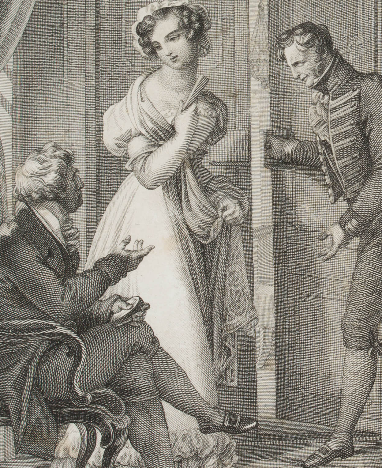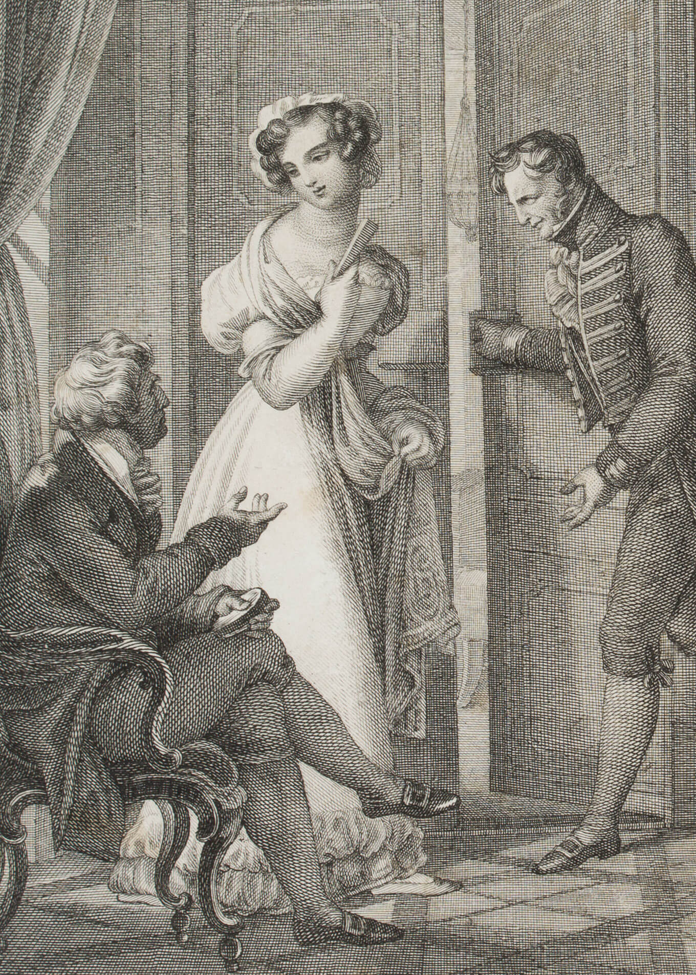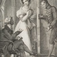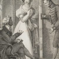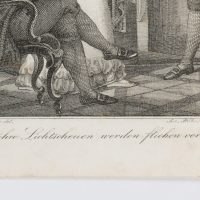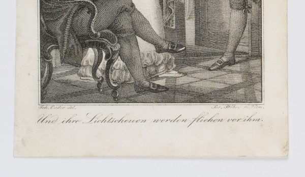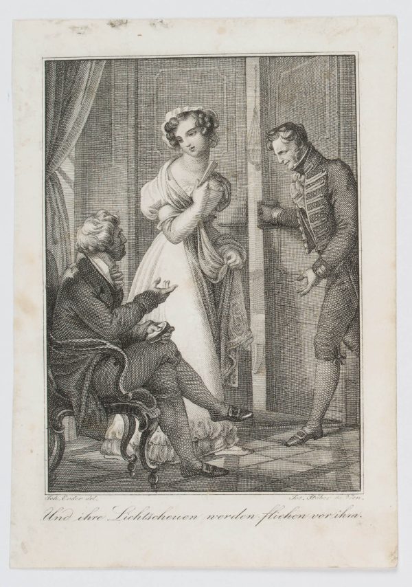 Joseph Stöber (1768 Vienna – 1852 ibid.) after Johann Nepomuk Ender (1793 – 1854 ), And their light-shy ones will flee from him, book illustration from “Vergissmeinnicht Bd. 6” by Carl Gottlieb Samuel Heun, 1828, Etching