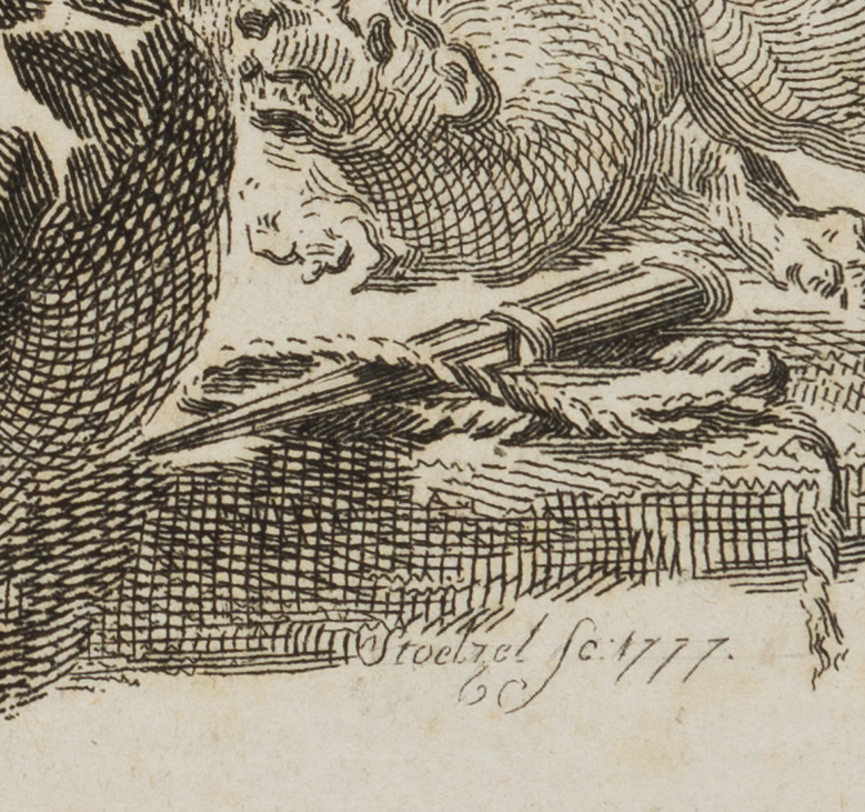 - Beschreibung: Unter der Darstellung signiert und datiert, links: “Schenau del.”, rechts: “C.F. Stoelzel sc. 1777”.