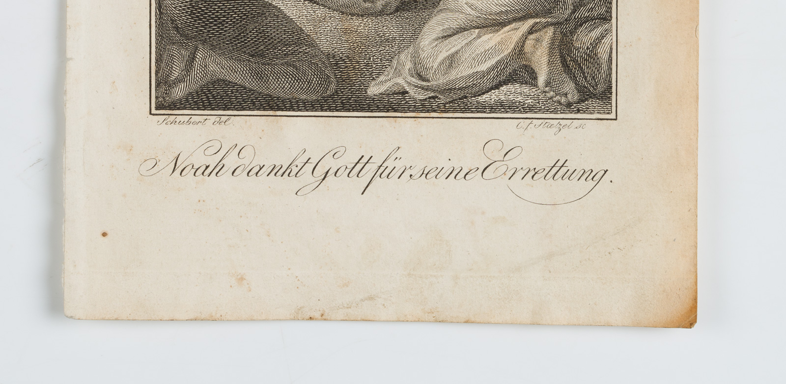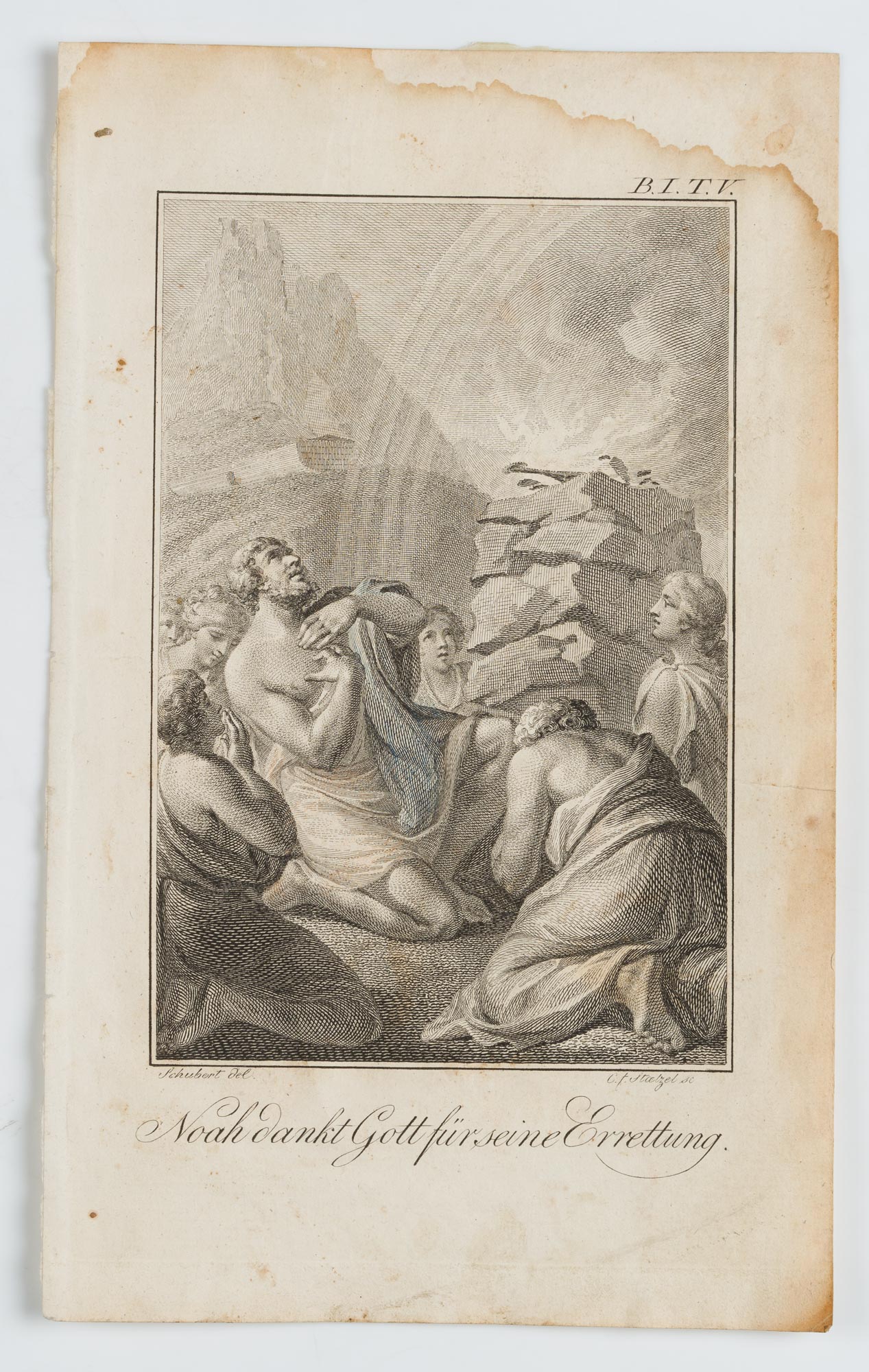 Christian Friedrich Stölzel (1751 Dresden – 1816 ebd.) nach Johann David Schubert (1761 Dresden – um 1822 ebd.), Noah dankt Gott für seine Erretung, 19. Jahrhundert, Kupferstich
