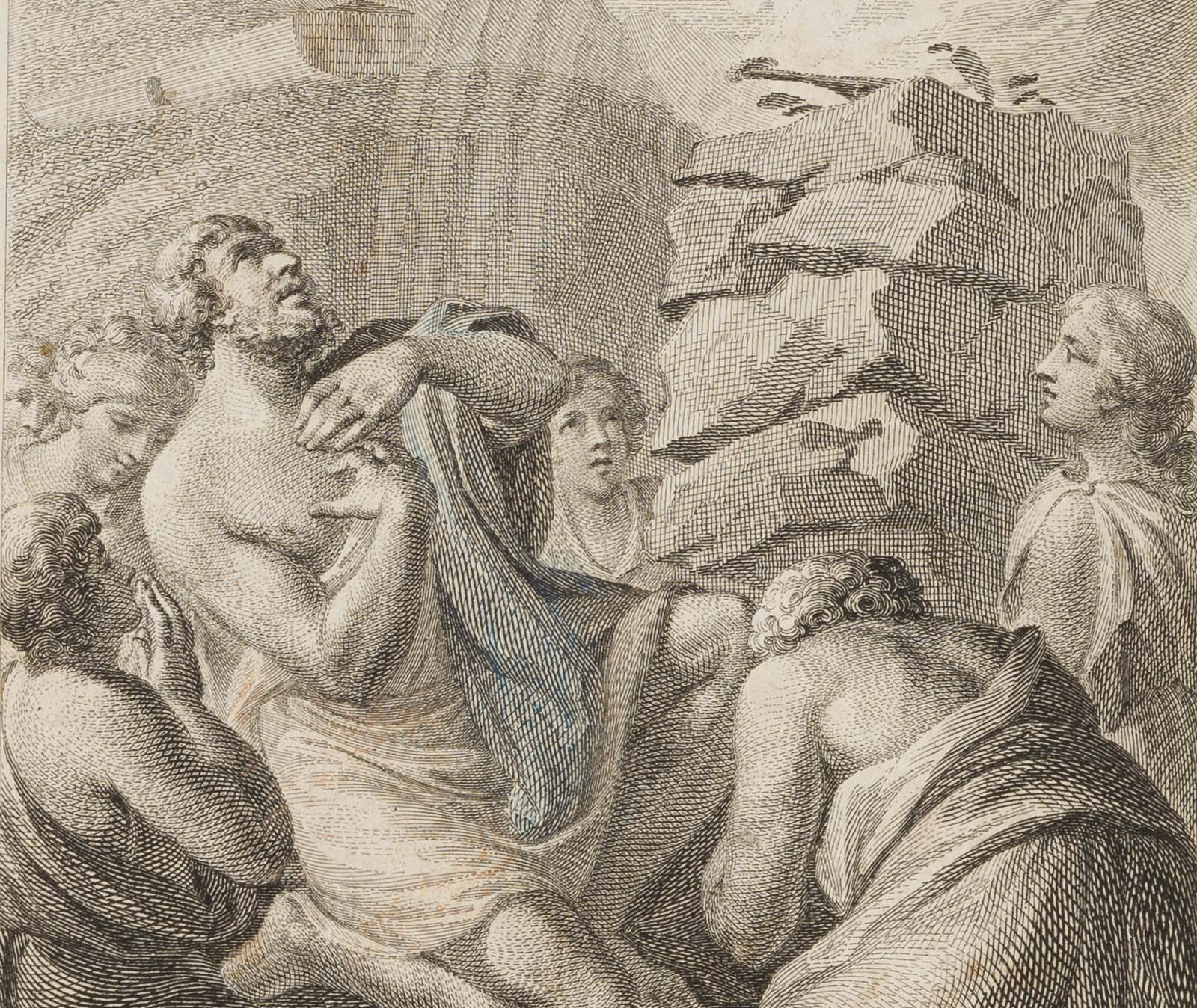 Christian Friedrich Stölzel (1751 Dresden – 1816 ibid.) after Johann David Schubert (1761 Dresden – around 1822 ibid.), Noah thanks God for his salvation, 19th century, Copper engraving