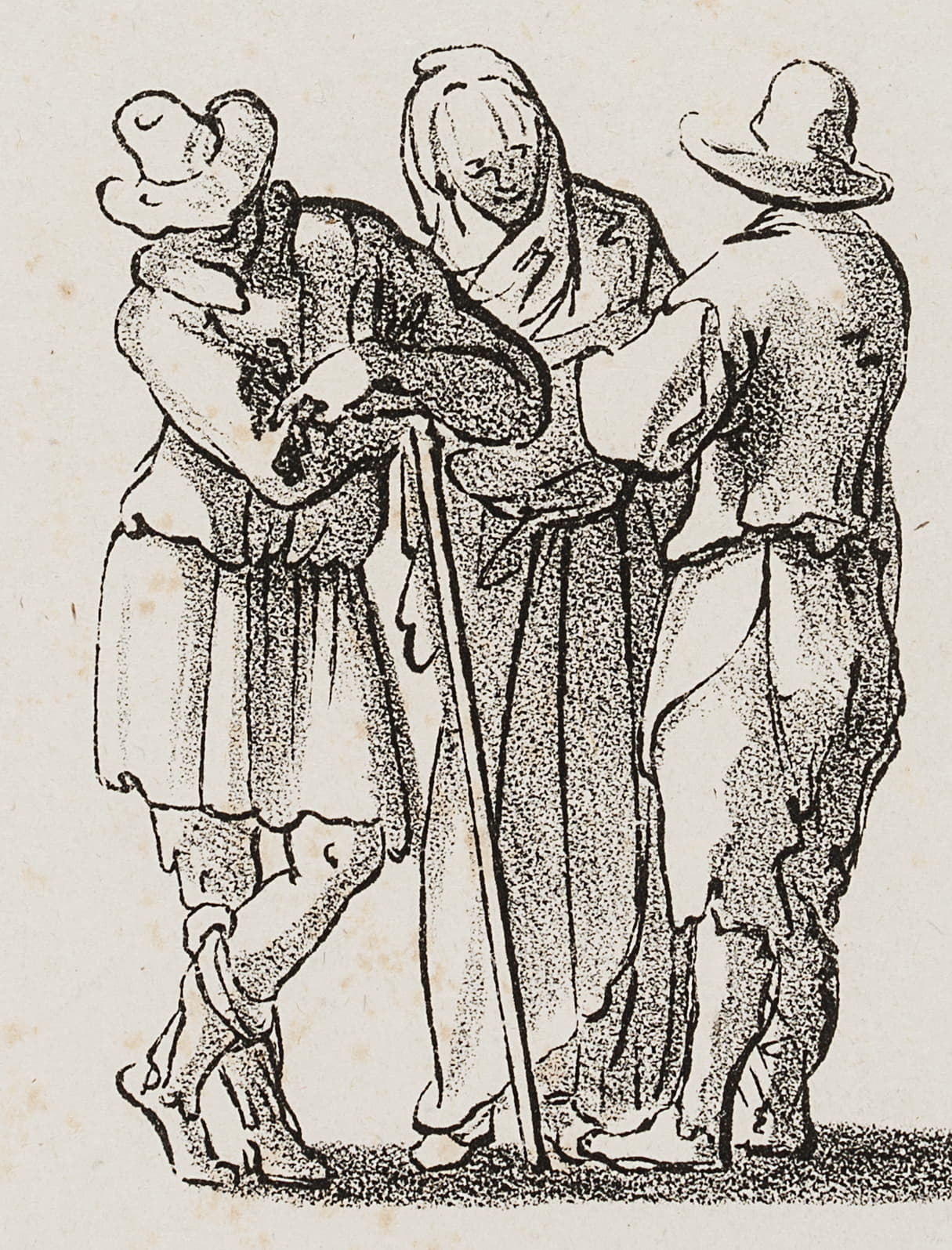Johann Nepomuk Franz Xaver Strixner (1782 Altötting – 1855 München) nach Remigio Cantagallina (um 1582 Borgo Sansepolcro – 1656 Florenz), Drei Bauern im Gespräch, um 1808, Lithographie