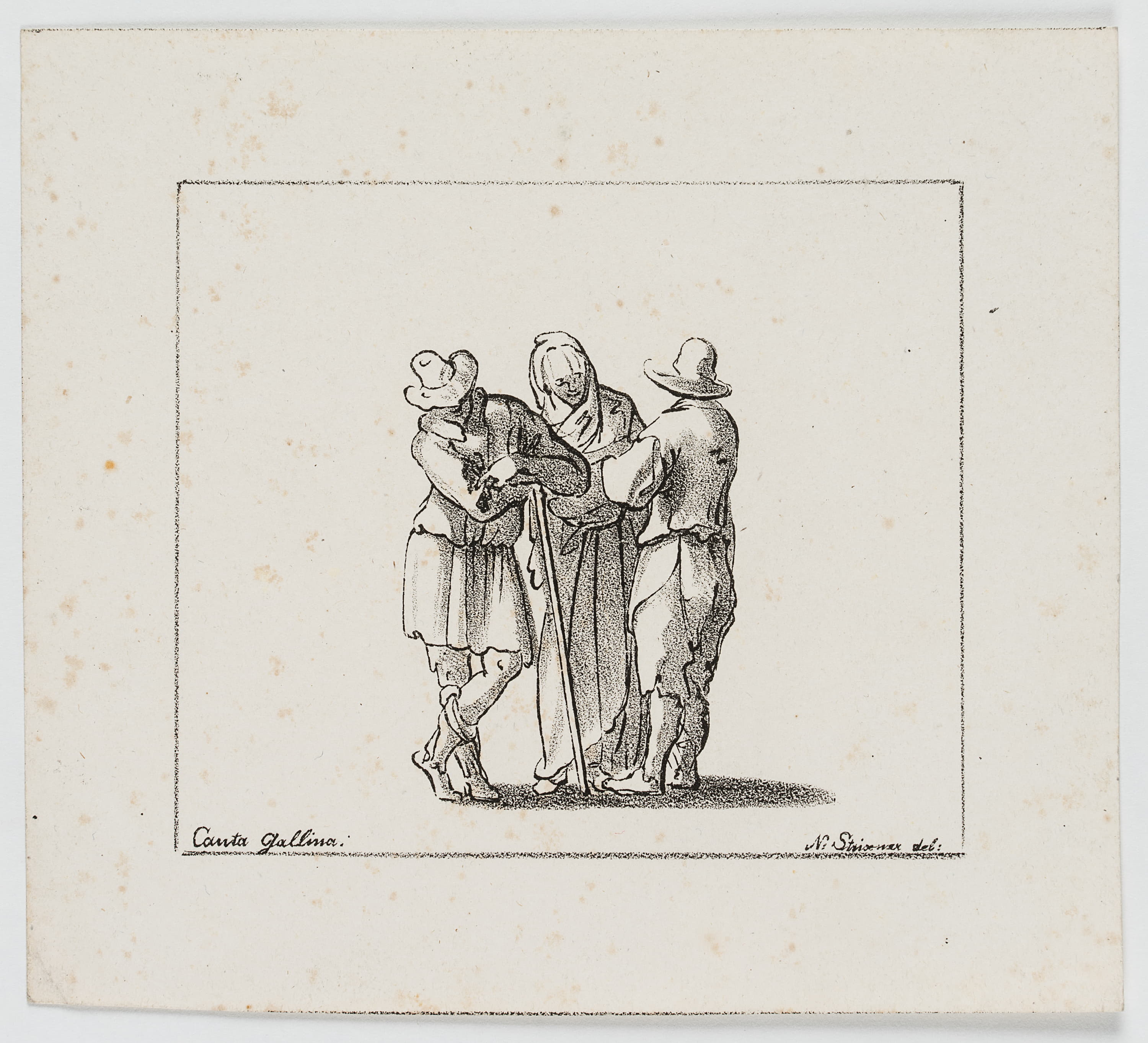 Johann Nepomuk Franz Xaver Strixner (1782 Altötting – 1855 Munich) after Remigio Cantagallina (around 1582 Borgo Sansepolcro – 1656 Florence), Three farmers in conversation, c. 1808, Lithography