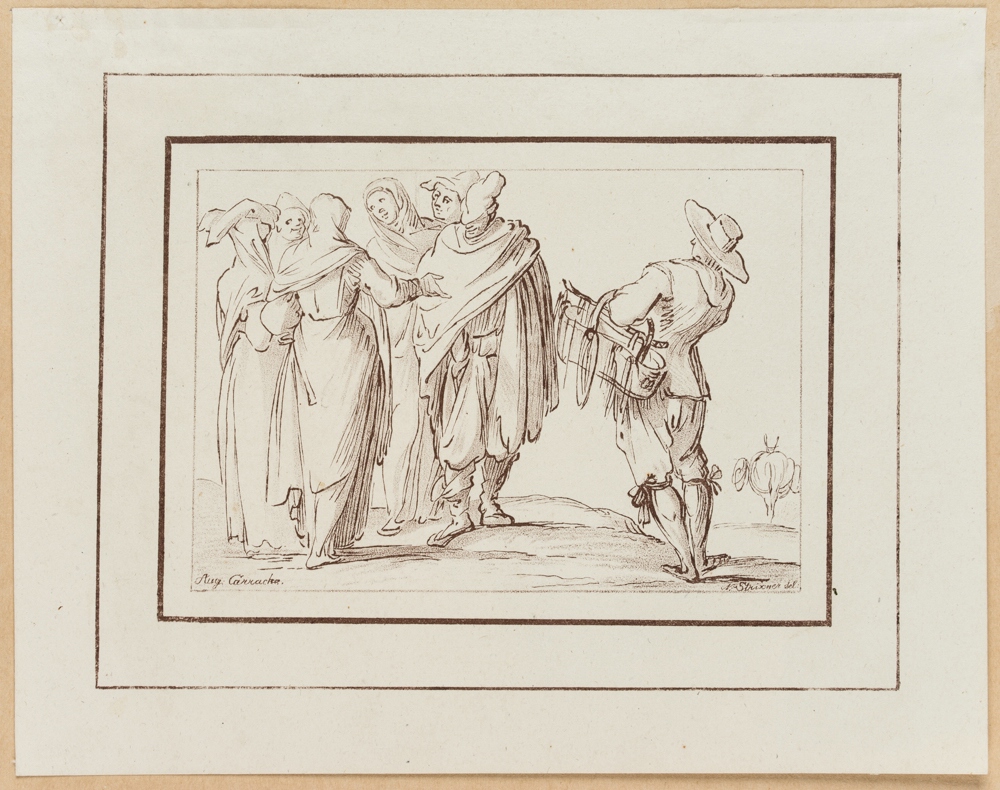 Johann Nepomuk Franz Xaver Strixner (1782 Altötting – 1855 Munich) after Agostino Carracci (1557 Bologna – 1602 Parma), Group of figures with noblewomen and grocers, 19th century, Lithography