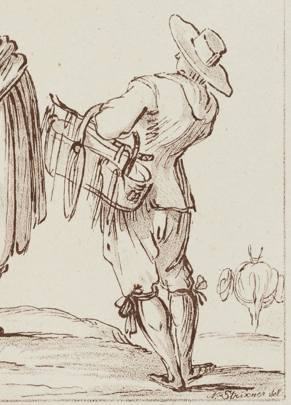 Rückseitig befindet sich der Sammlungsstempel “Sammlung Justinus Kerner”, des bekannten deutschen Dichters und Mediziners (1786 Ludwigsburg – 1862 Weinsberg). Das Blatt lässt sich bei R. Arnim Winkler: Die Frühzeit der deutschen Lithographie unter 356/28.2 finden.