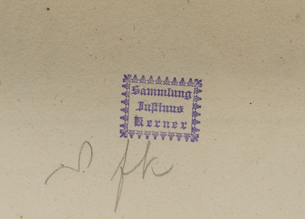 - Stamp: Collector’s stamp, Lugt no.: 1567b. Justinus Kerner. Budapest. 19th century